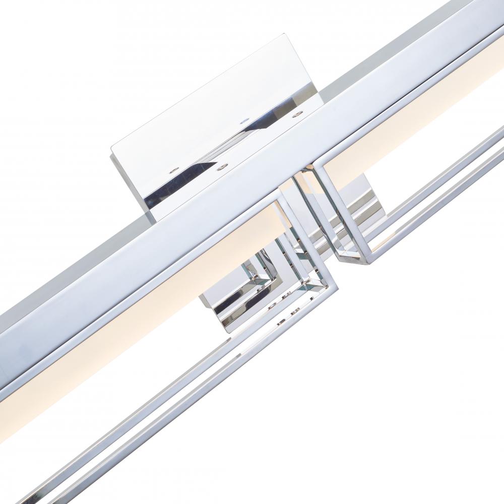 This modern, geometric design will add a whole new level of elegance to your bathroom. Pane features caged glass vanity lights with frosted glass diffusers.