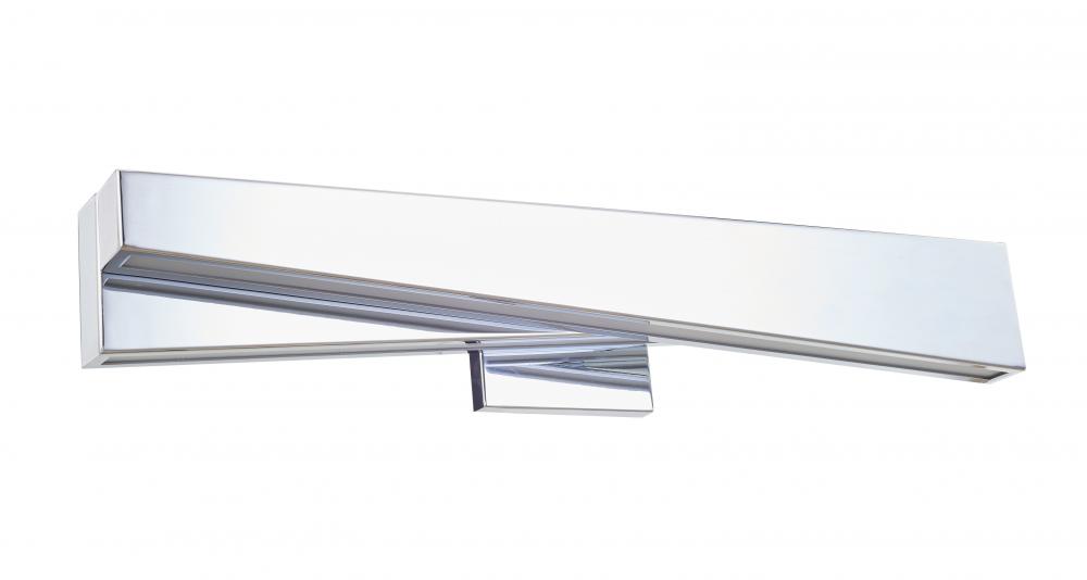 Twin angled vanity light with high output LED's providing an intense whilst cleean and diffused light output.