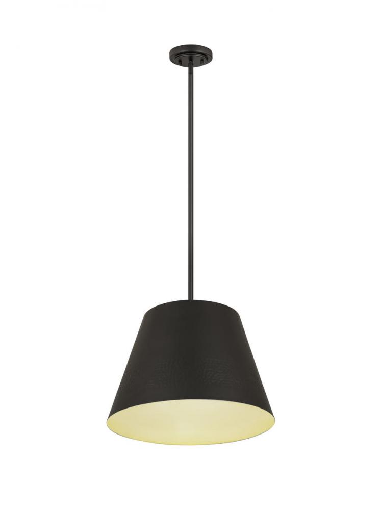 Illuminate your home with the warm glow of the Maddox pendant. Featuring a conical shade with a hammered belt detail, this pendant lends an elegant addition to any decor. Available in Matte Black, Rubbed Brass, and Polished Nickel finishes, the Maddox offe