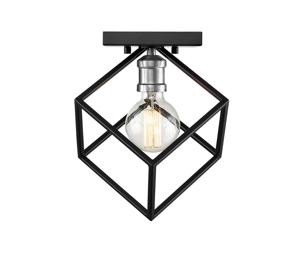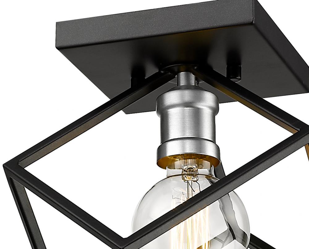 Crisp lines and a modern edge highlight the design of this two-tone one-light flush mount light for your home. Its fashioned with a matte black and brushed nickel finish with a cube-shaped shade for a look thats eclectic and timeless. Its an eye-catching design that will be a showpiece light in any dining room, foyer, bedroom, or home office.