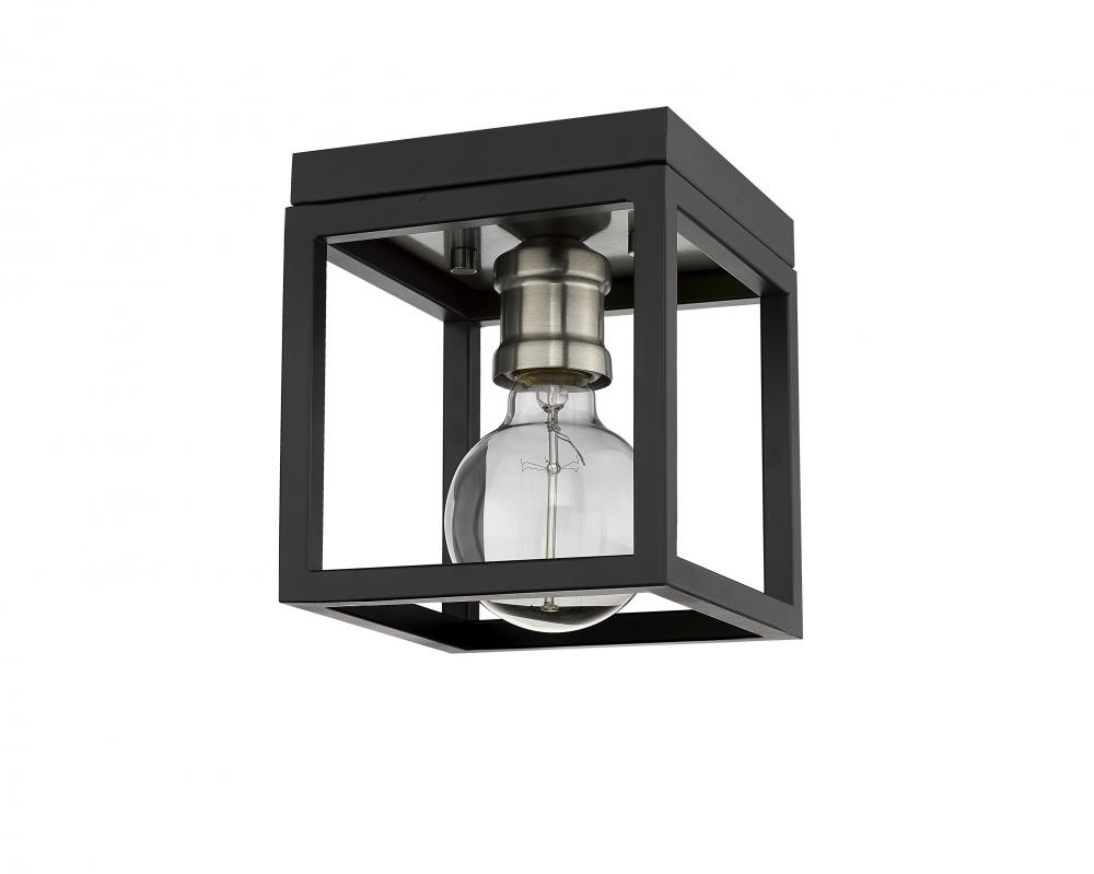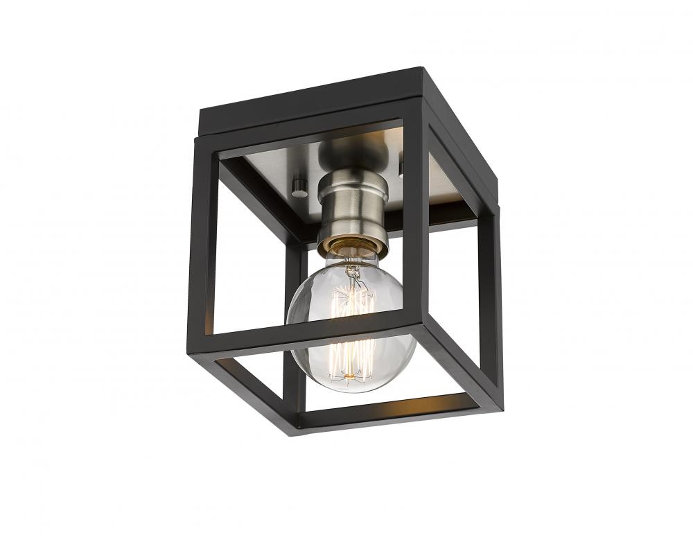 Add a bold, edgy presence to your favorite space with this two-tone one-light flush mount light. It features a combination matte black and brushed nickel finish in a bold square design that draws the eye. It adds a look of elegant authority to any bathroom, powder room, hallway, or bedroom.