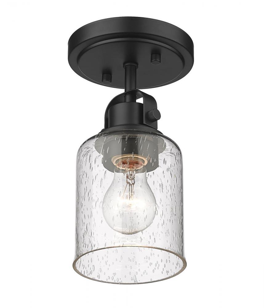 Inspired by the metropolitan lifestyle, this flush mount wall light brings stunning illumination to hallways, bedrooms, home offices and much more. With a seeded glass shade and steel frame in an heirloom gold finish, it provides a beautiful accent to any interior.