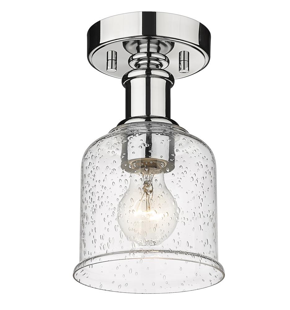 Add a touch of lighting or accent a tight space with this beautifully understated transitional flush mount, designed with lustrous chrome finish plate and versatile gooseneck arm that invites you to rotate and hone in on the interior as you wish. With industrial influences and elegant materials, this sophisticated single-light flush lends a sleek, refined expression to modern farmhouse homes with its versatility as well as its soothing glow, presented by a clear seedy glass globe that offers a hint of texture and artisan quality. Place this classically designed restoration style flush mount within an entryway foyer or down a hallway, elevating it into a more inviting space.