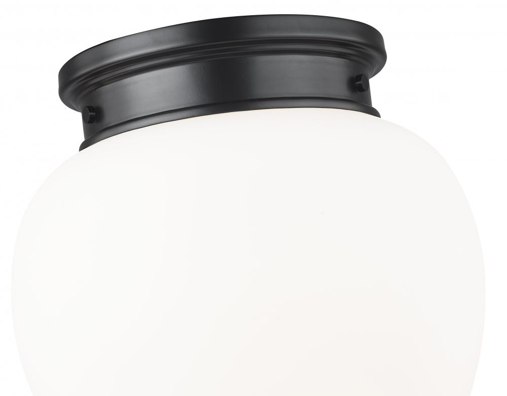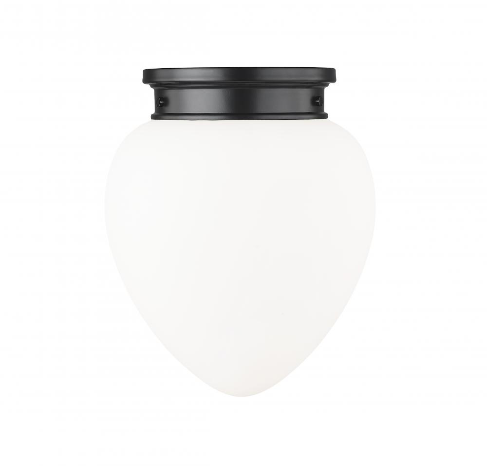Artisanal craftsmanship harnesses the vintage charm of schoolhouse glass to create a chic silhouette for a modern one-light flush mount ceiling light. A delicately rounded, teardrop-style glass shade is crafted in etched opal glass, delivering timeless elegance that brims with versatility, complementing in casual and more formal living spaces. A matte black finish is crisp and elegant, complementing surrounding decor with ease.