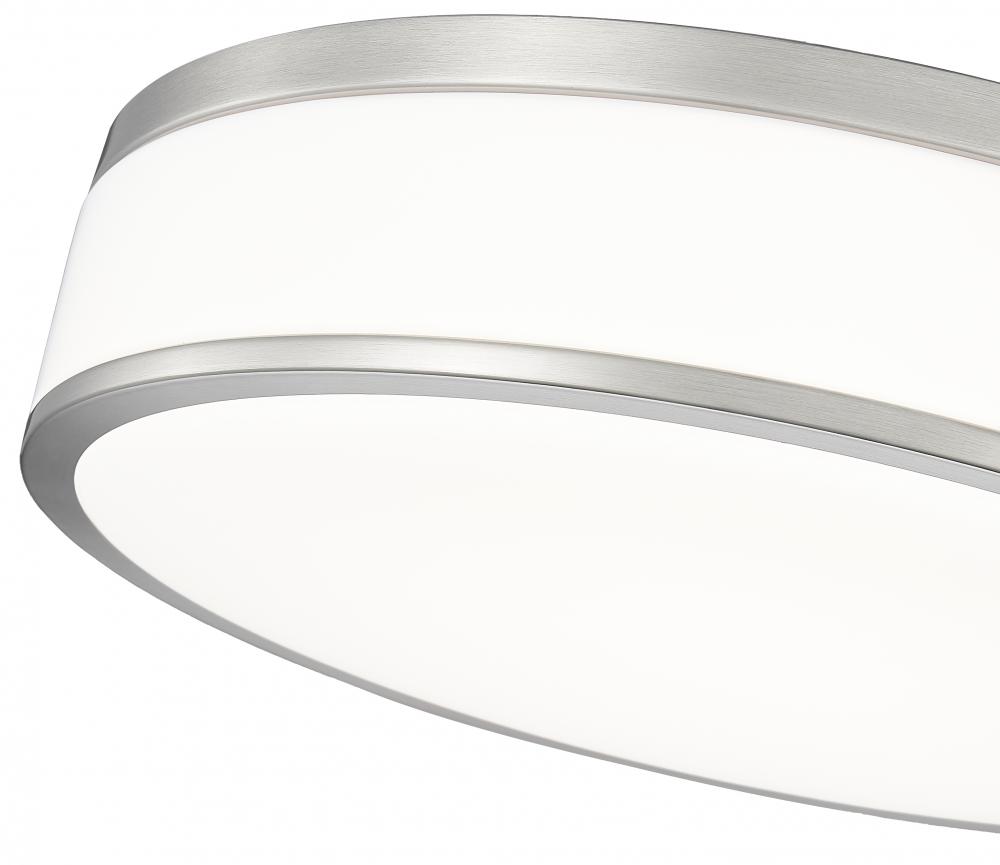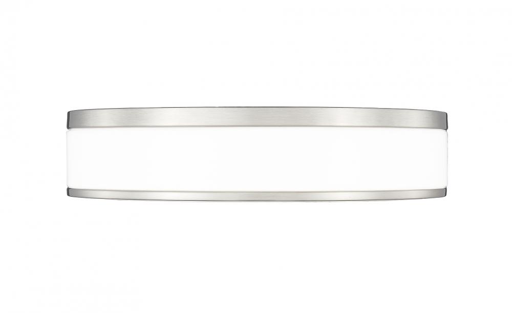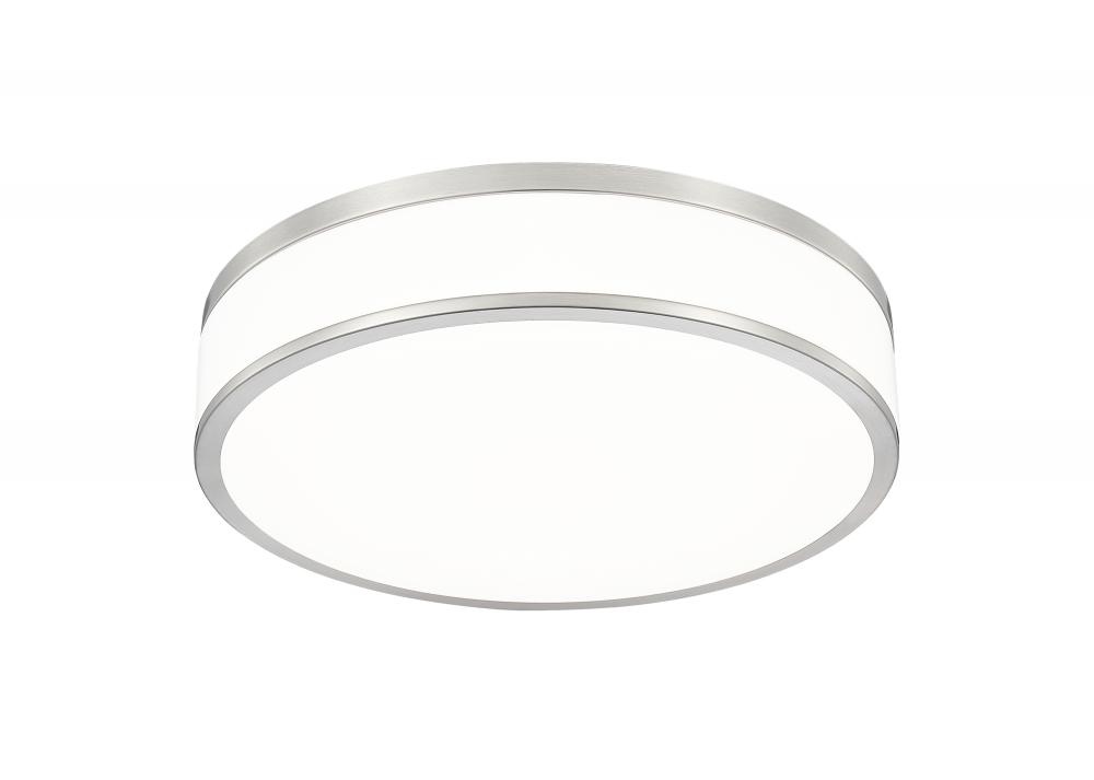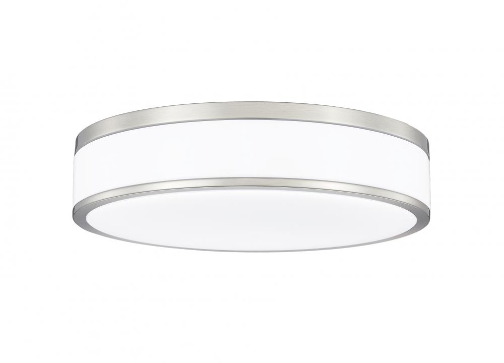 Fashion forward brushed nickel sets the tone for a refined modern one-light flush mount ceiling light. Bands of brushed nickel finish steel create a sleek frame, while frosted acrylic diffusers ensure soft, inviting lighting for your bedroom, den, or living room seating group. This LED fixture is an energy efficient choice for your home.