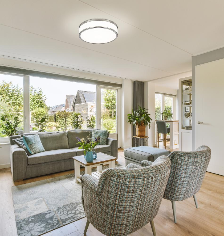 Stylish metal banding in a choice of a Brushed Nickel, Matte Black, and Modern Gold finish brings a touch of sophistication to the Ballord flush-mount, which will provide dimmable ambient light to any room. It also offers a 90 CRI and a choice of 5CCT to a