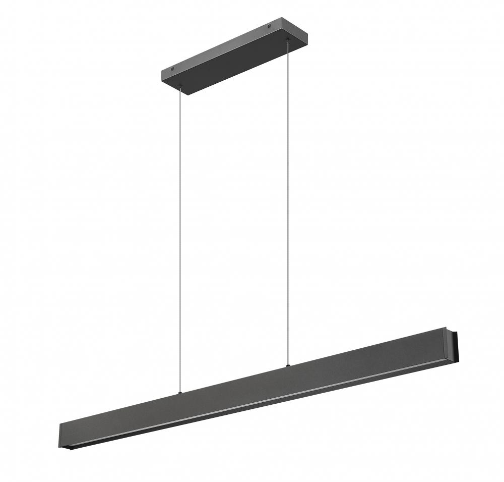 Matte black adds standout contrast and depth to this modern LED linear chandelier. Its a simple, sleek silhouette with an aluminum framework that provides robust support over a kitchen island, gaming table, or workspace. Integrated LED lighting and a frosted diffuser create inviting illumination thats dimmable for added versatility.
