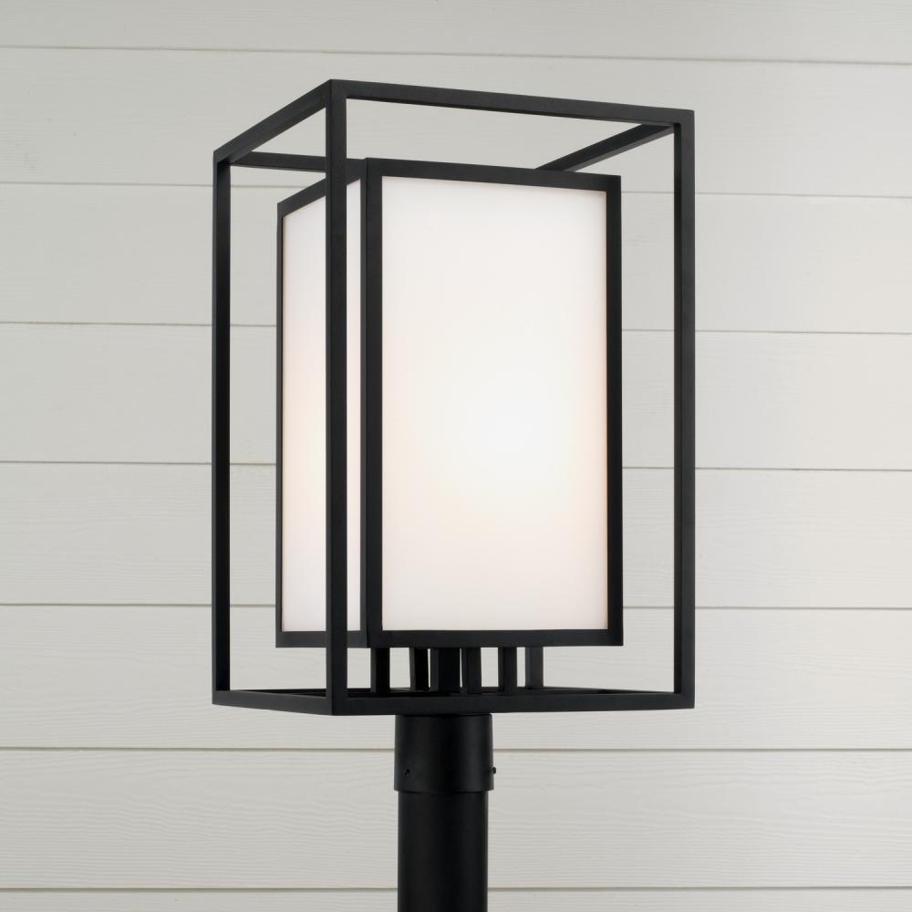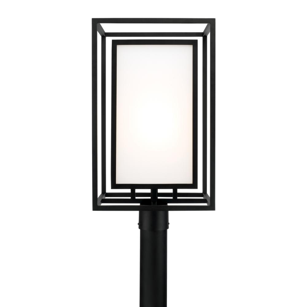 Neat and contemporary, the Aiden Outdoor Post Lantern creates the illusion of floating light with inner and outer rectangular forms. The Soft White glass panes cast a warm glow to perfectly complement the squared silhouette, while the Black finish delivers a distinct aesthetic. Part of our Rain or Shine Series and backed by our five-year warranty.