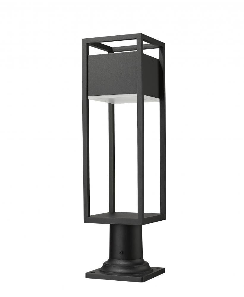 Secure this modern outdoor pier mounted fixture to walkway columns and deck corners for a warm, soothing glow around your veranda or exterior entertainment space. From the Barwick collection, this outdoor light fixture features an open and airy, rectangular aluminum frame in a deep black finish, lending itself nicely to your homes existing facades color palettes. This pier mounted lantern also offers an updated, sophisticated design with its etched glass plate, which covers an energy-efficient LED-integrated lamp.