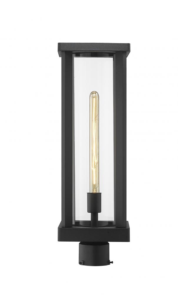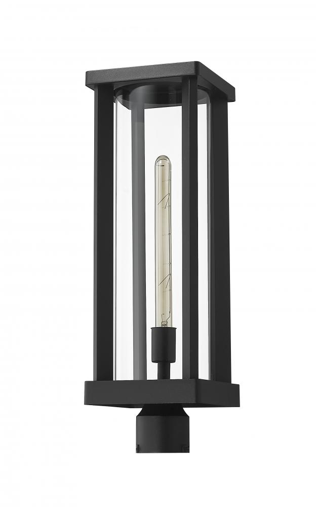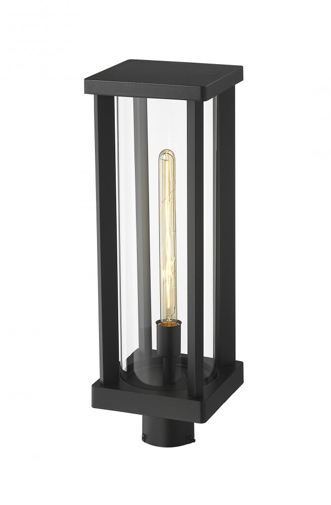 From the Glenwood outdoor lighting collection, this contemporary post mounted lighting fixture can be secured along railings to illuminate a spacious deck or veranda entertainment area. With a tube-like clear glass globe encased within an open aluminum lantern frame, this post mount fixture provides enough illumination for dining al fresco and holding late night chats into the night. It also features a dark black finish that complements your homes existing exterior building materials and color scheme.