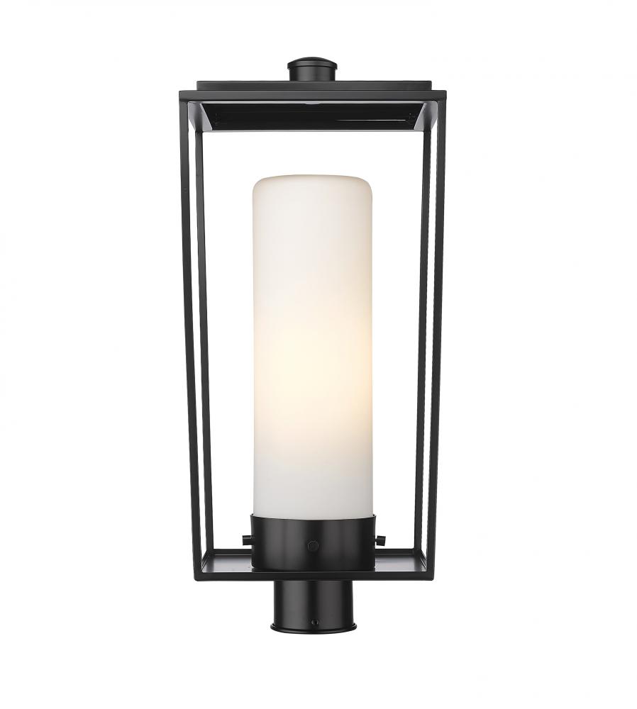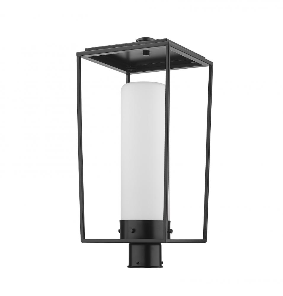 Modern elegance takes on a transitional motif suitable for versatility and flexibility as the Sheridan one-light outdoor post mount fixture tops an existing post with a new, fresh look. Black finish steel forms an impressive open box frame reminiscent of a nautical lantern, delivering a soft romantic feel. Glowing light filters through a white opal glass shade to create heady effects in any space.