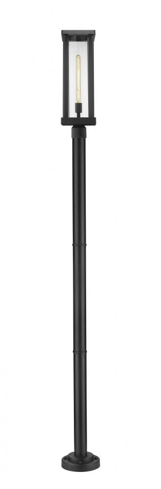 Perfect for illuminating a pathway to the backyard or to the front porch, this outdoor post mounted fixture from the Glenwood collection lends a sleek, sophisticated look with its tall, sleek design and dark black finish. With a slender column and cage-style lantern made of aluminum materials, this lamppost style outdoor lighting piece also features a round disc-like base and a cylindrical clear glass globe that encases and shields the bulb from the elements while allowing a full glow. Mount this contemporary outdoor lamp post along a walkway to guide guests into the home.