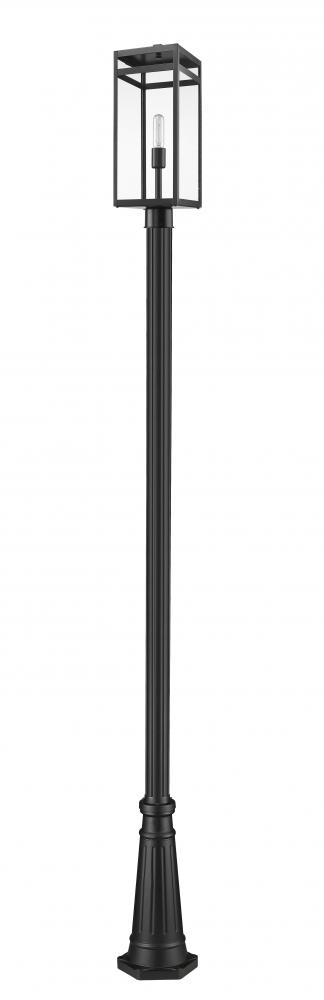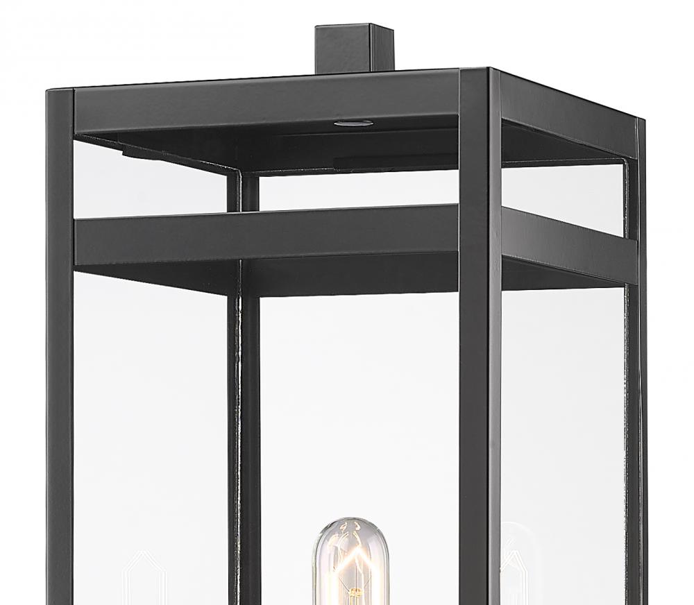 Joining the trend of mixed motif design styles, the Nuri one-light outdoor post mounted fixture joins old and new with a clean, crisp linear frame and a body ending in a delicately curved base. This fixture presents a commanding presence as a source of ambient lighting outside a residential or commercial structure. With clear glass panels shielded by linear frame elements, an inner bulb mount is in full view.