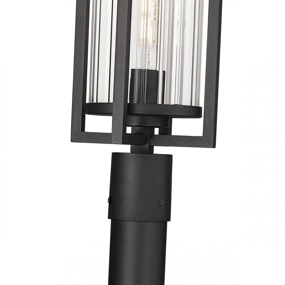 A timeless design offers the utmost sophistication in exterior lighting as this one-light outdoor post-mounted embellishes any setting. Cool Coastal black painting over aluminum construction plays nicely with textural elegance in ribbed glass, as a dimensional silhouette adds a new perspective.