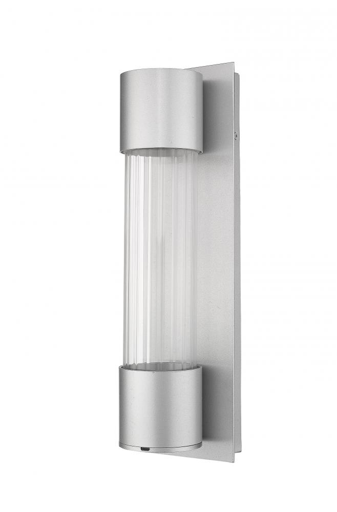 Sleek in silver, this small wall sconce enhances contemporary decor with a cool, crisp look. Clear optic glass ensures true illumination while a cylinder silhouette and bold end caps catch the eye.