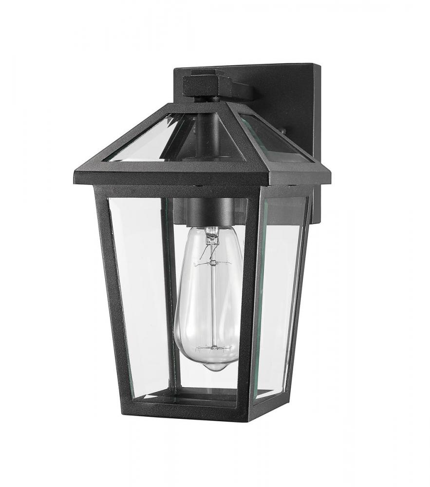 Add ambient lighting to an exterior front or back yard space with a classic fixture reflecting a charming village theme. Made from Midnight Black metal and clear beveled glass panels, this single-light outdoor wall sconce delivers a stylish upgrade to complete a design-forward look on a structure or fence.
