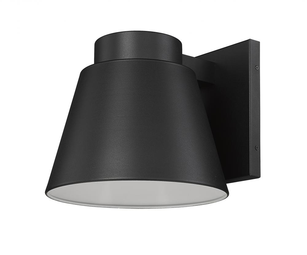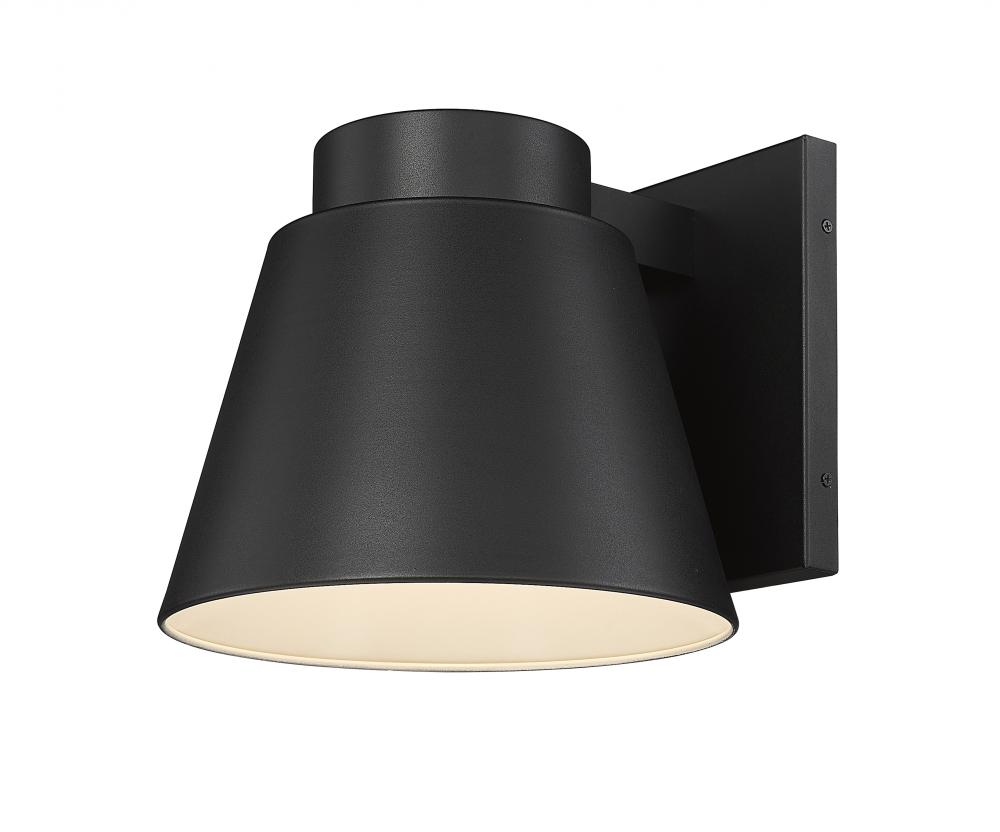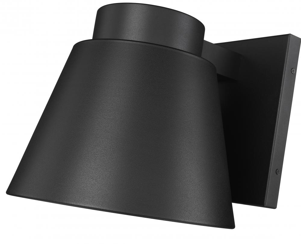 A subtle design with sleek minimalist shaping complements this one-door outdoor wall sconce. From the Asher collection, this fixture features construction of attractive black finish aluminum with a sandblast effect on its conical shade.