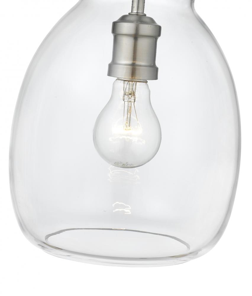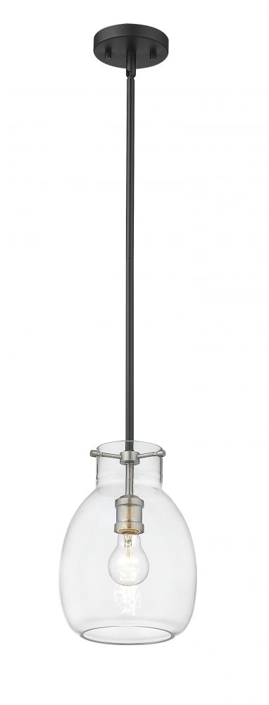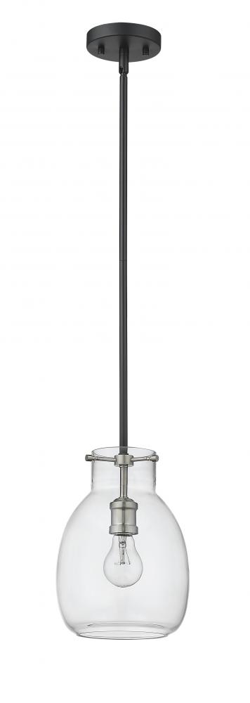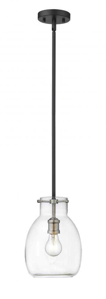 A sleek metal frame in a matte black finish blends elegantly with brushed nickel accents to give this single-light mini pendant a chic, modern look. Its clear glass shade casts a brilliant glow that beautifully illuminates any room.