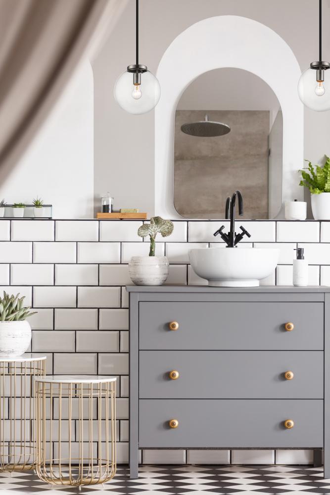 The Parsons collection of mid-century modern inspired fixtures, blended with contemporary design are finished in black with brushed nickel accents and clear glass, or black with brass accents and matte opal glass. With a multitude of shapes and sizes, and