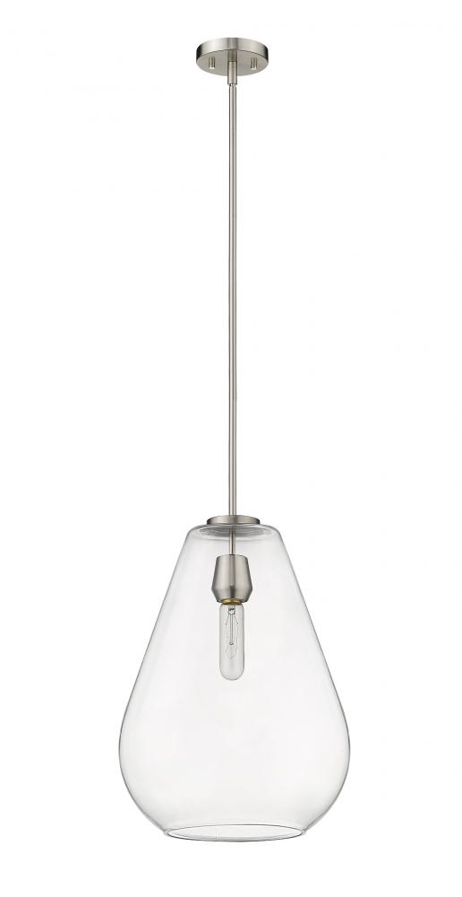 Beautiful tear drop shaped hand-blown glass, available in clear or blue. Make a dramatic statement by using it alone or with one of our canopies to create a custom chandelier. Available in two sizes, clear glass with olde brass or brushed nickel, or blue g