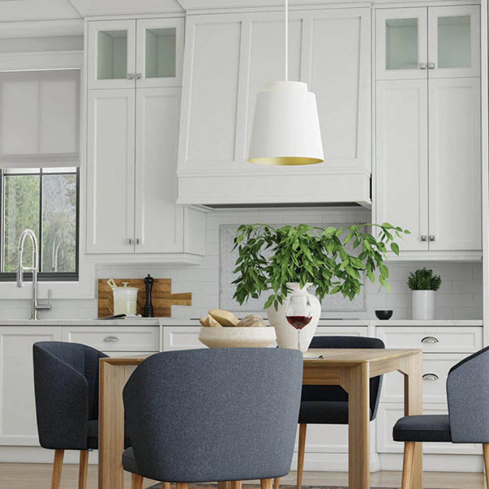 Tapered and concise, the Pratt Pendant brings sophisticated style to any space. Finished in Matte White, the tiered metal shade creates a sleek aesthetic, while the inner Soft Gold finish invites intriguing dimension.