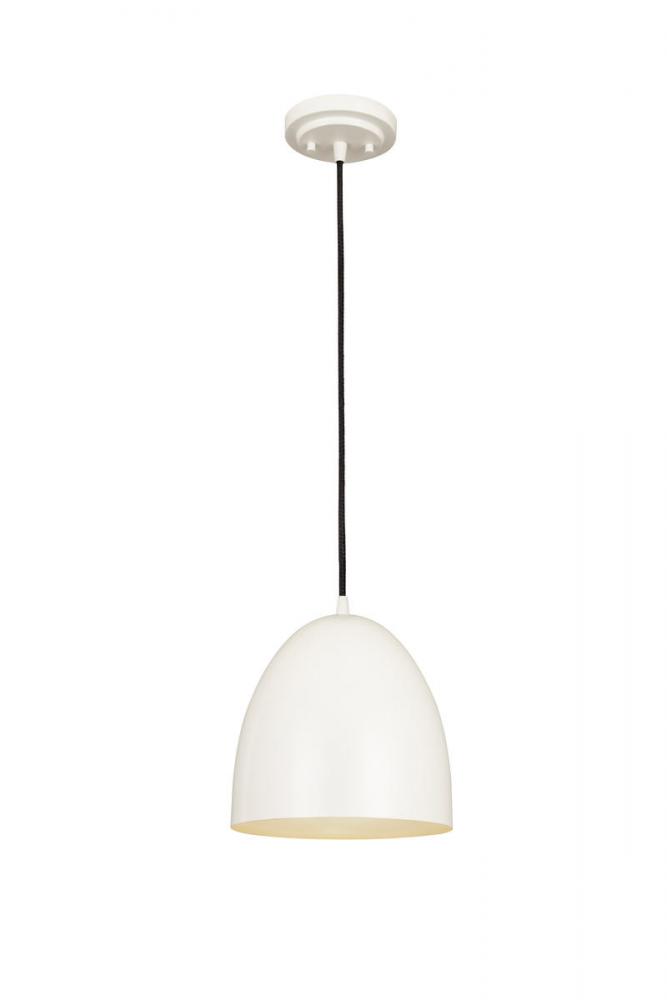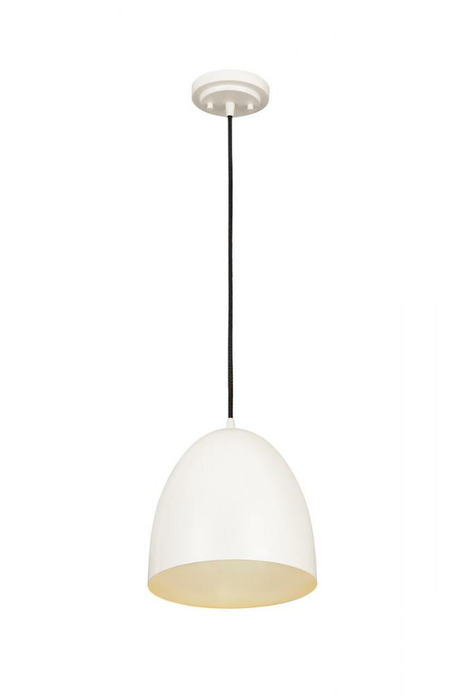 Solve lighting challenges in compact spaces with a cheeky, Mid-Century Modern style fixture that becomes part of a design scheme. The Z Studio Dome pendant brings targeted lighting to casual nooks and reading spaces, bedrooms and kitchens. With a farmhouse feel, this versatile dome-style pendant offers a matte white finish iron shade and matching canopy, as a charming braided black cord adds finishing touches.