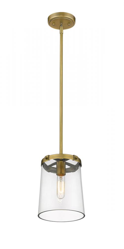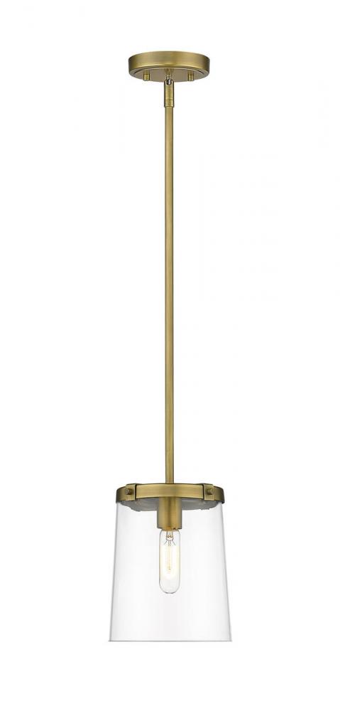 This sleek, metal mini pendant light blends a rich, rubbed brass finish with a tasteful, tapered glass shade to complement d?cor. This classic fixture is ideal for illuminating a transitional kitchen or dining room.