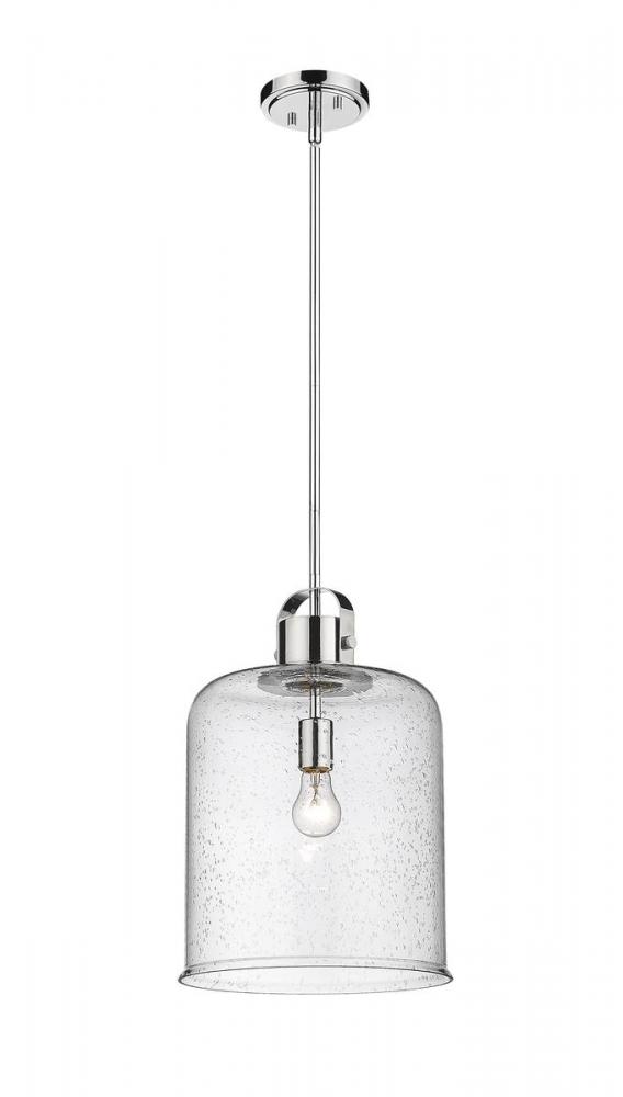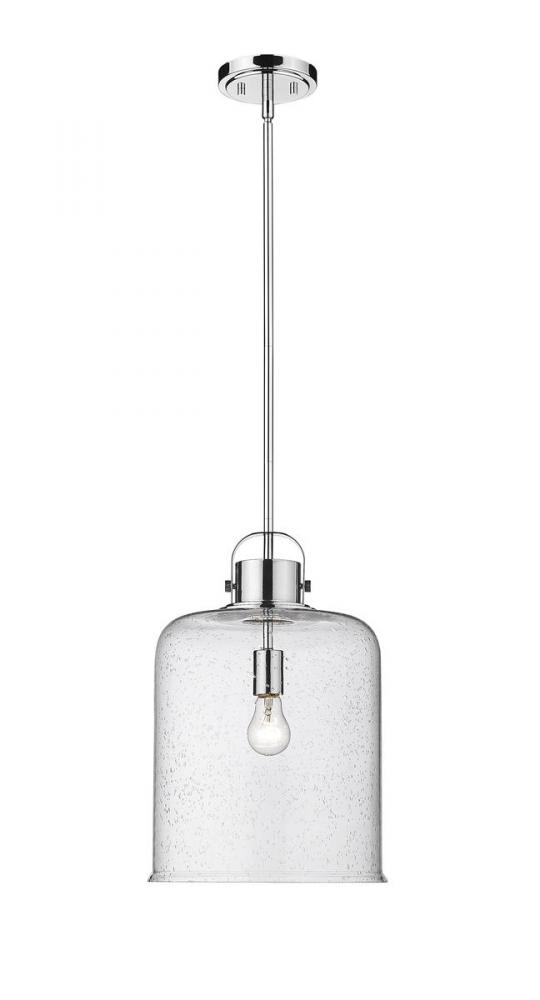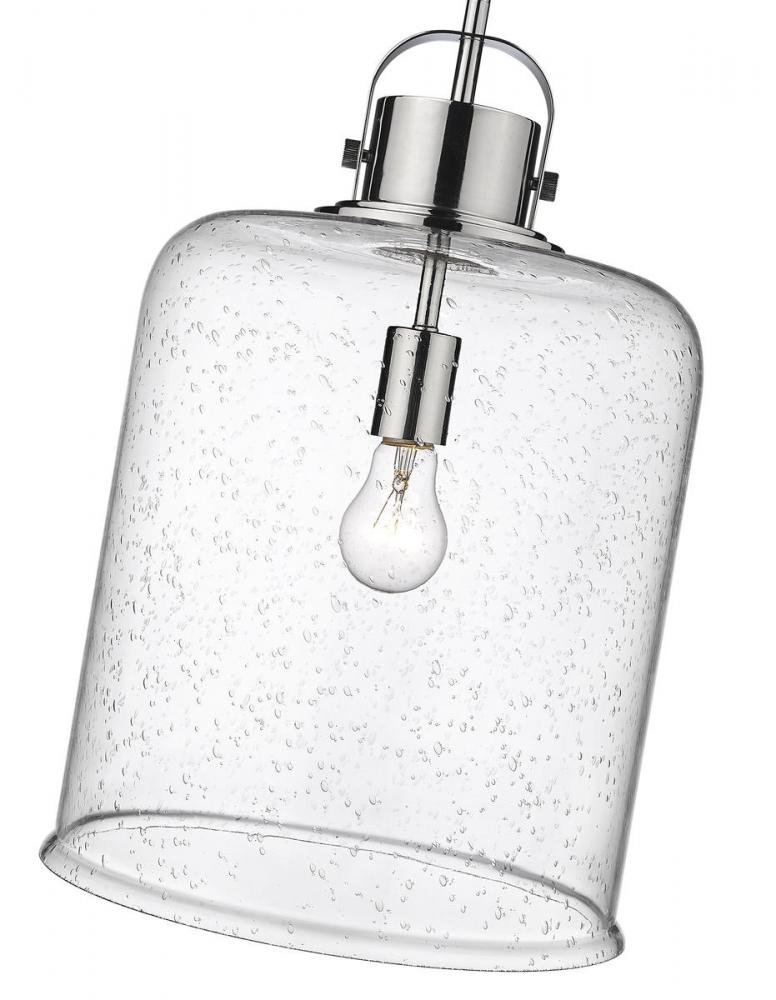 A modern take on a classic design, this brushed nickel pendant light will add illumination and style to kitchen islands, breakfast bars and more. The seeded glass shade is balanced by the cylindrical silhouette which elegantly diffuses the light and creates a soft glow.