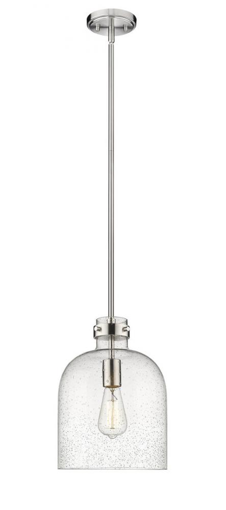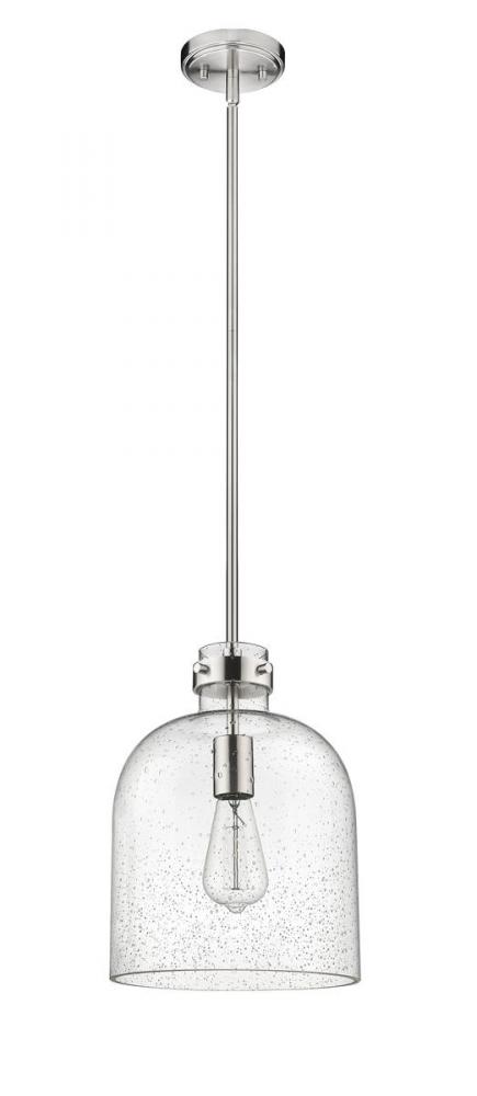 A one-light chandelier is sure to freshen up the allure of any dining room or kitchen area. The crisp and clean design features a dome shape seedy glass shade, steel construction and a brushed nickel finish. This fixture is sure to serve as the centerpiece for modern and farmhouse spaces.