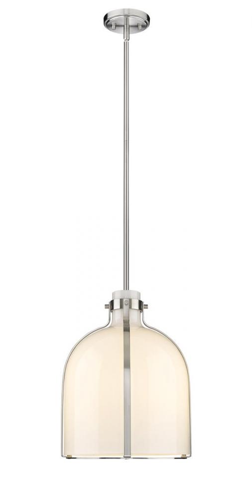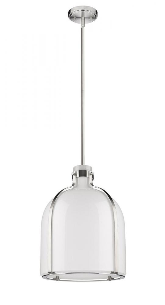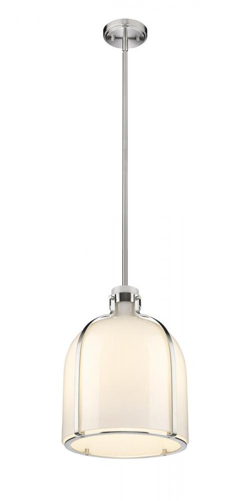 This one-light chandelier will bring modern farmhouse appeal to your dining room, kitchen island, or breakfast bar. It features a steel construction with a brushed nickel finish and a white opal glass shade to diffuse the light. The crisp and clean design of this chandelier makes it a focal point in your space.
