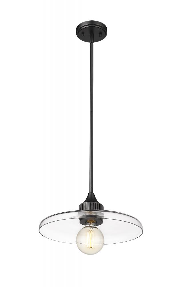A disc of smooth, clear glass ensures bright illumination from this modern one-light pendant from the Paloma collection. Adding an element of nostalgia and craftsmanship in any room, the fixture pairs a crisp matte black finish with a simple, clean silhouette that promises bright illumination in a stylish but understated profile.