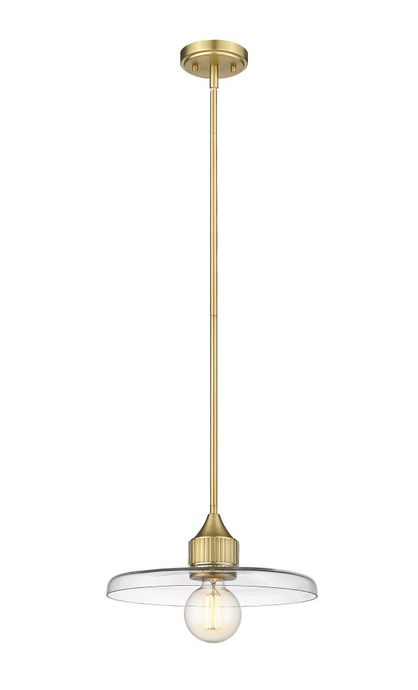 A disc of smooth, clear glass ensures bright illumination from this modern one-light pendant from the Paloma collection. Adding an element of nostalgia and craftsmanship in any room, the fixture pairs a warm olde brass finish with a simple, clean silhouette that promises bright illumination in a stylish but understated profile.
