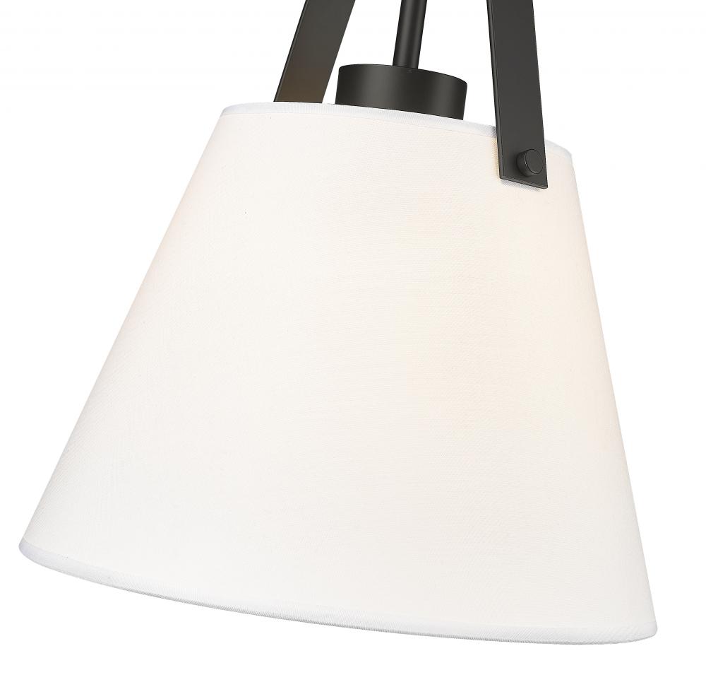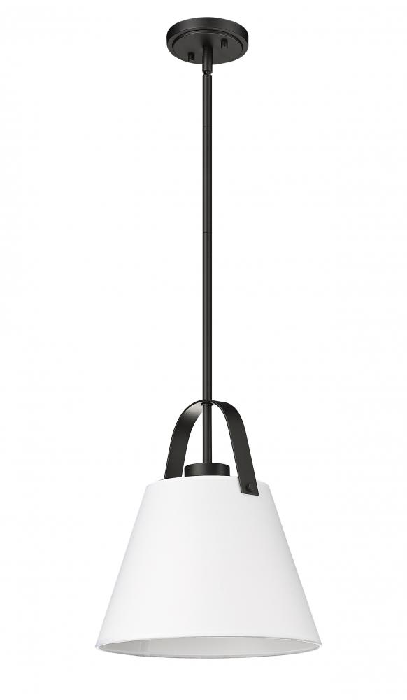 Suited to a more spacious setting, this charming one-light pendant from the Z-Studio collection invokes imagery of coastal charm, farmhouse personality, and casual elegance suited to a contemporary space. With a soft ivory finish conical fabric shade and a bold matte black metal framing, it delivers a crisp contrasting palette that captures attention. Choose this pendant to embellish the simple-living motif of a living room or foyer.