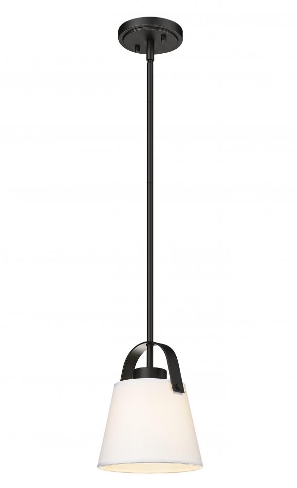Illuminate a casual space with the stylish look of casual, coastal, and farmhouse aesthetics blending in a fixture created for impact. This one-light pendant light from the Z-Studio collection offers symmetry and laid-back style with a matte black finish steel frame and a conical shade fashioned of ivory fabric. Add a clean look to a foyer, living area, or dining space with a pendant that reflects your signature design statement.