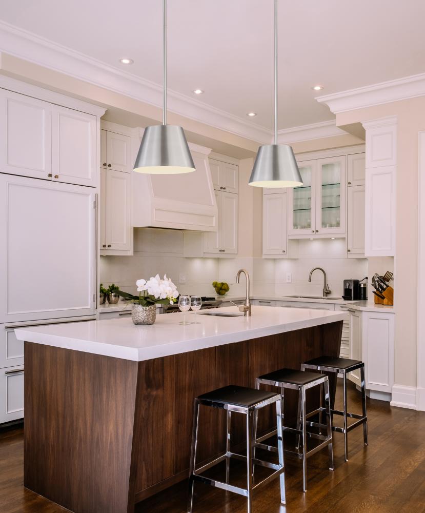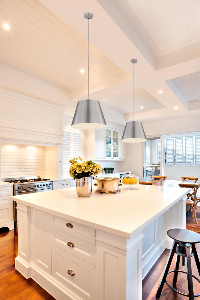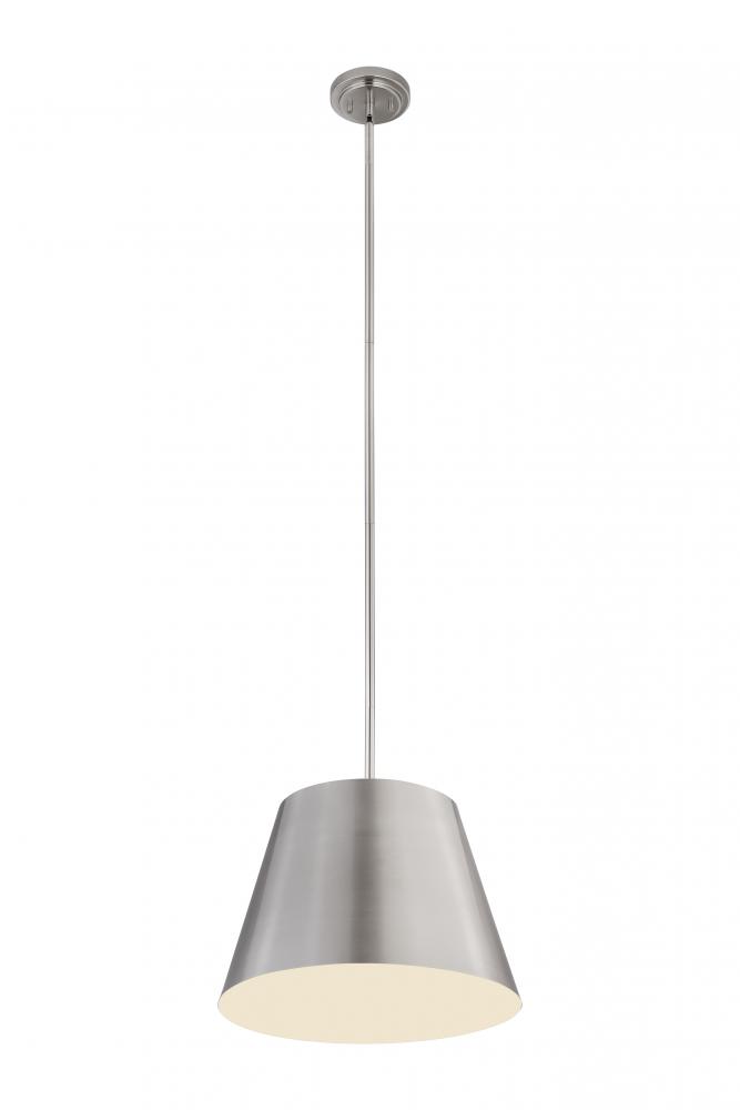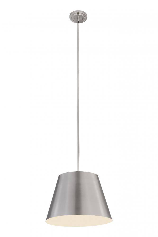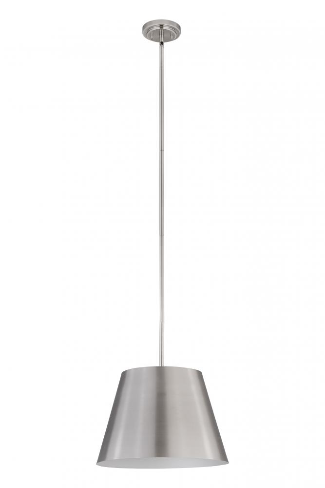 Elevate a modern kitchen or living area with the chic simplicity of this one-light pendant. Its versatile size is complemented with a contemporary empire shade, made from metal with a sleek brushed nickel finish that pairs perfectly with a white interior to ensure bright, diffused illumination.