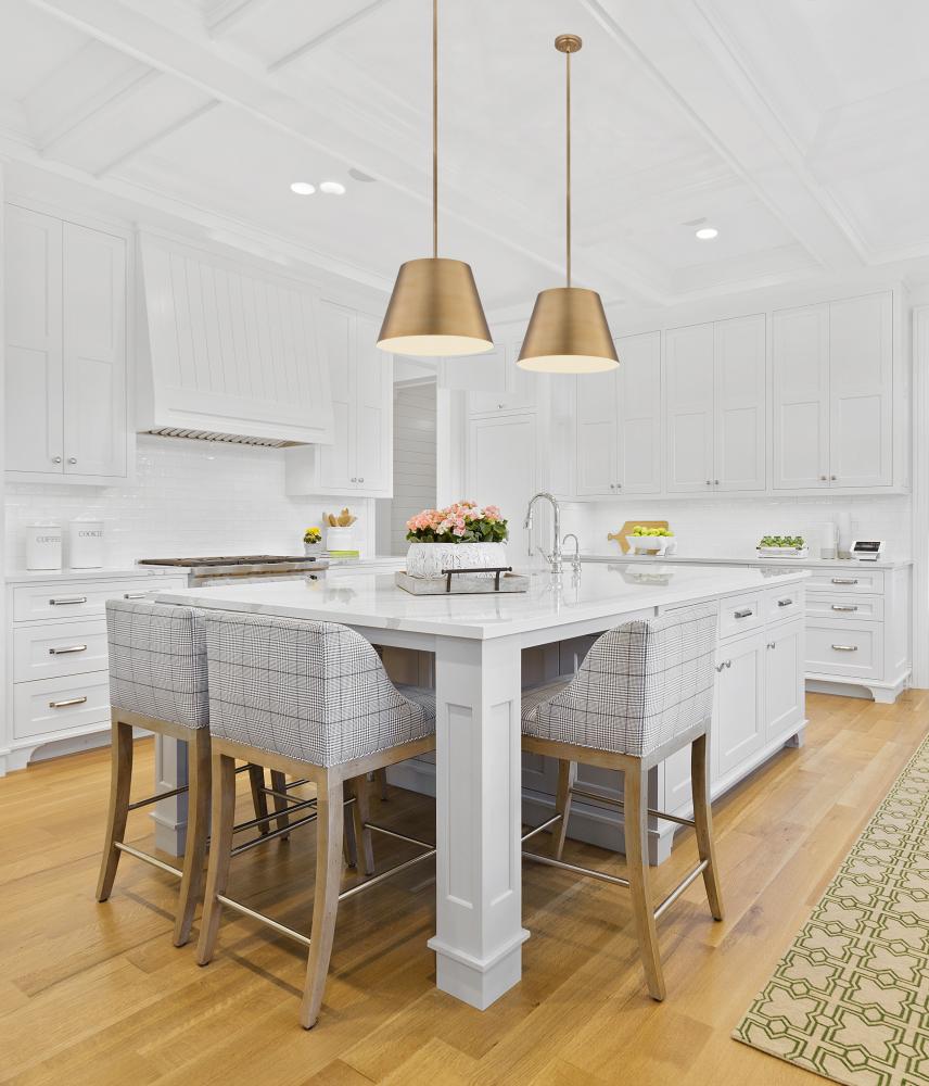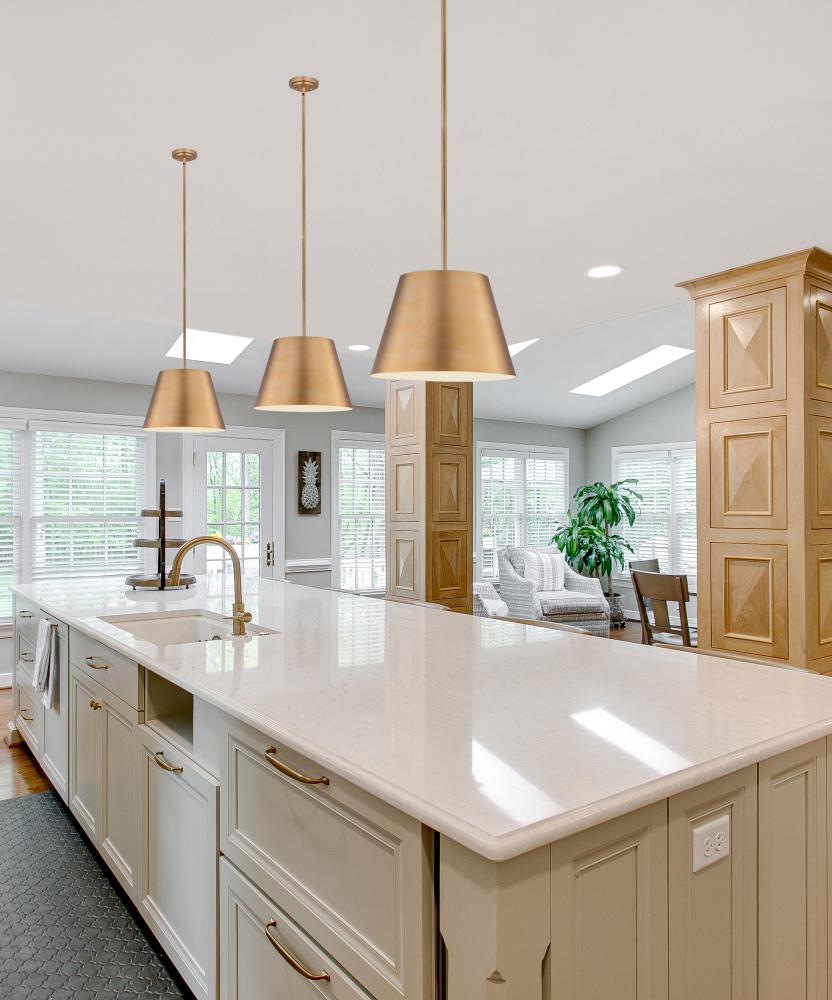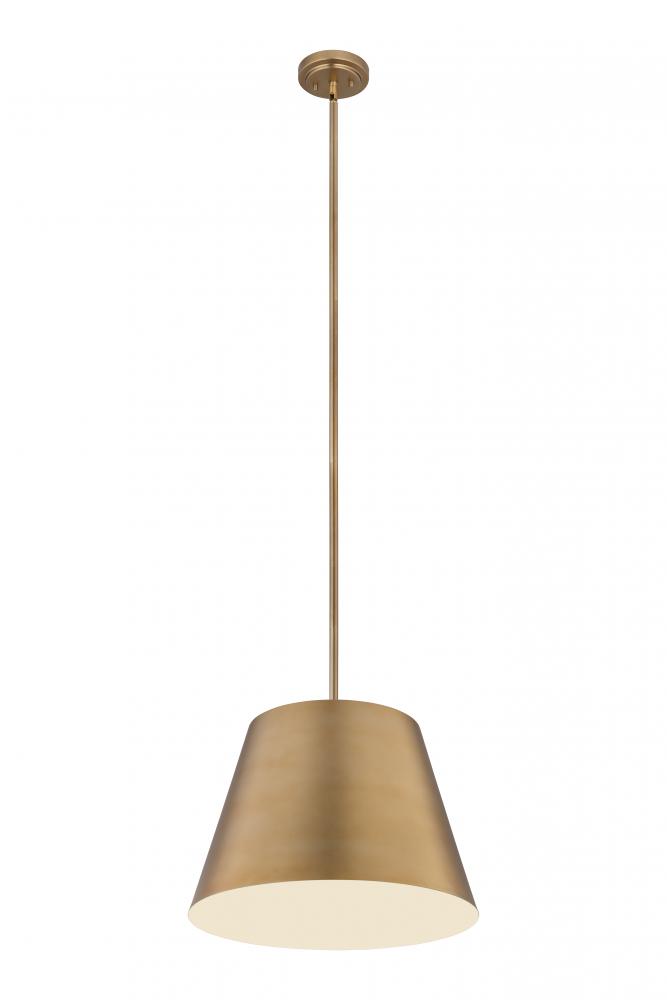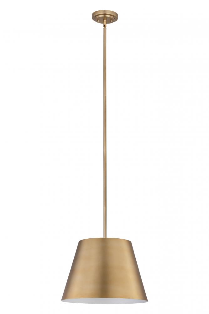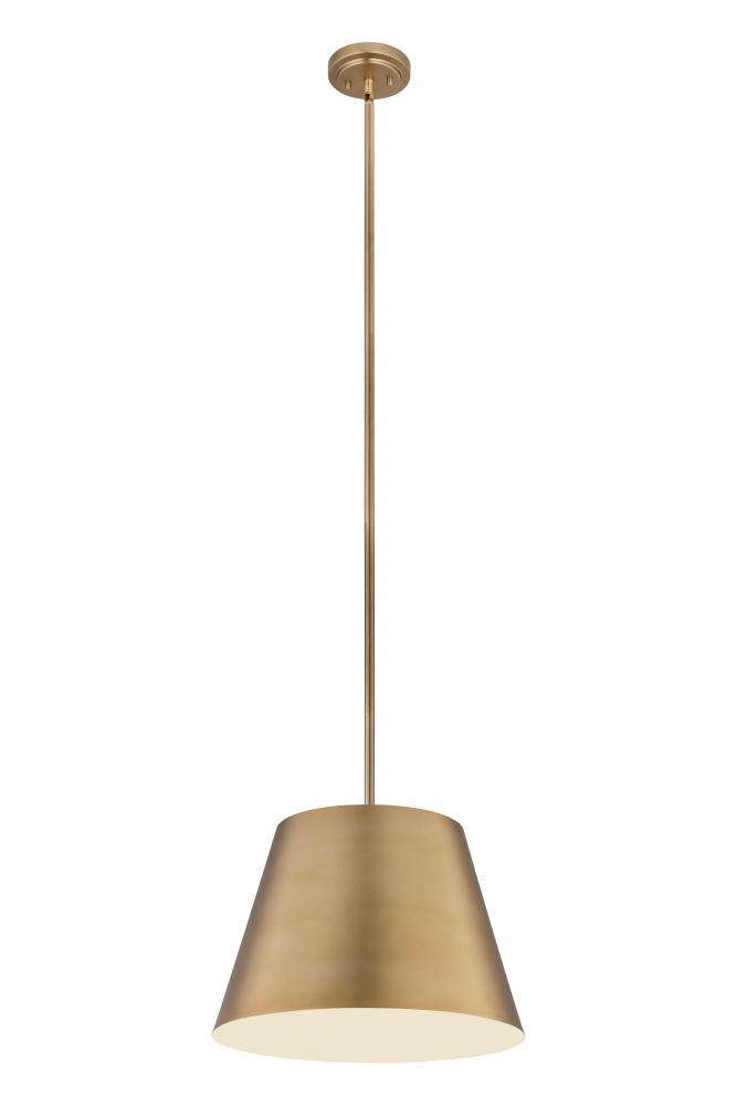 Elevate a modern kitchen or living area with the chic simplicity of this one-light pendant. Its versatile size is complemented with a contemporary empire shade, made from metal with a warm modern gold finish that pairs perfectly with a white interior to ensure bright, diffused illumination.