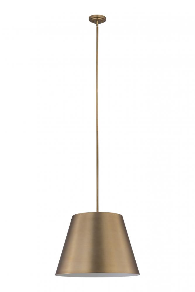 Bright, direct illumination radiates beautifully from a modern one-light pendant with a metal shade. The contemporary empire silhouette is exceptionally versatile as it offers a warm modern gold finish and a white interior for excellent lighting in any setting.
