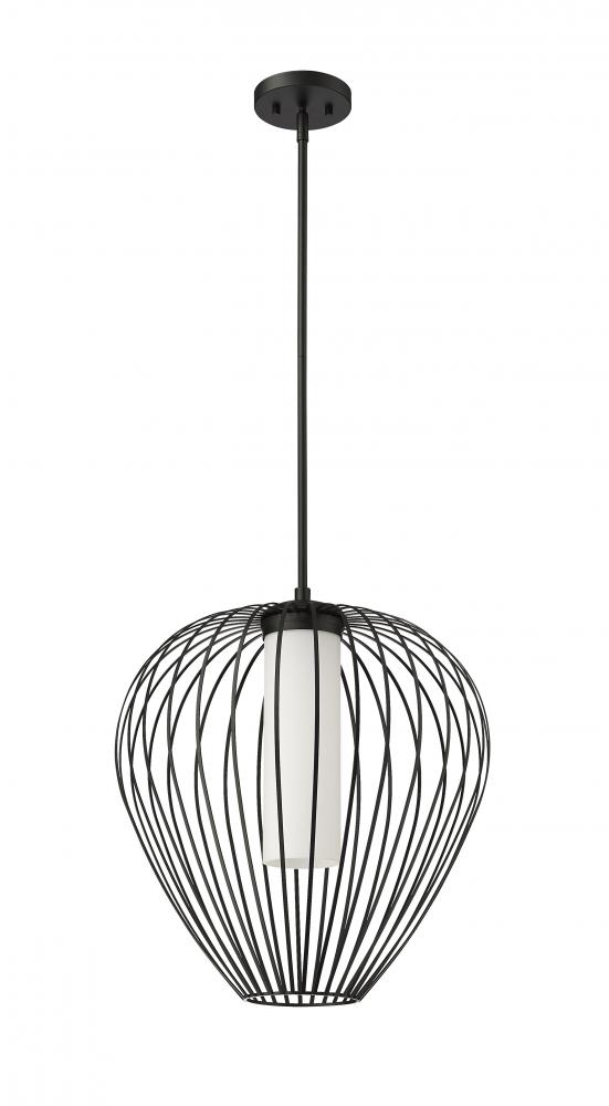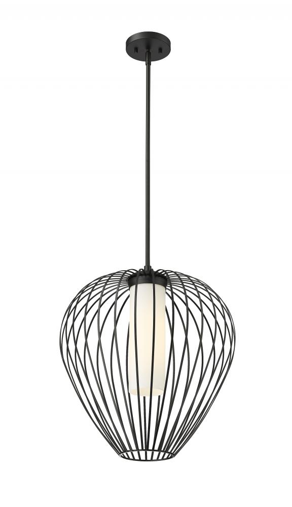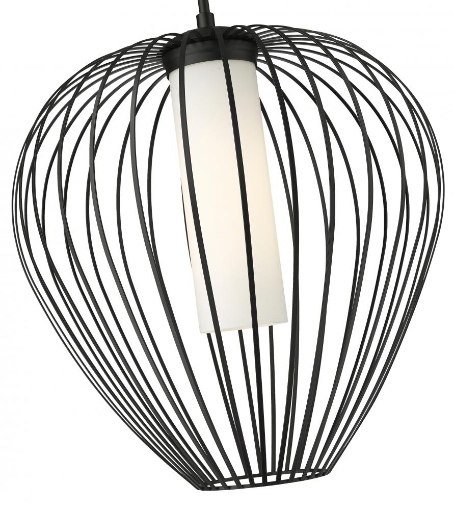 Slender spokes curve and taper to create the bulbous profile of a modern one-light pendant. Striking over a kitchen island or living room, it boasts a striking matte black finish paired with a white opal glass inner diffuser, creating inviting, true illumination and wonderful ambiance.