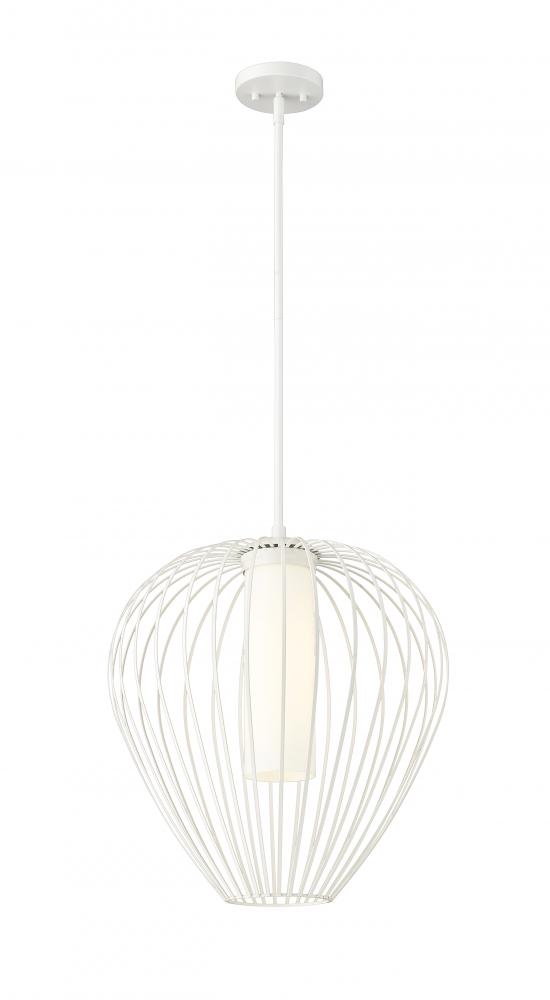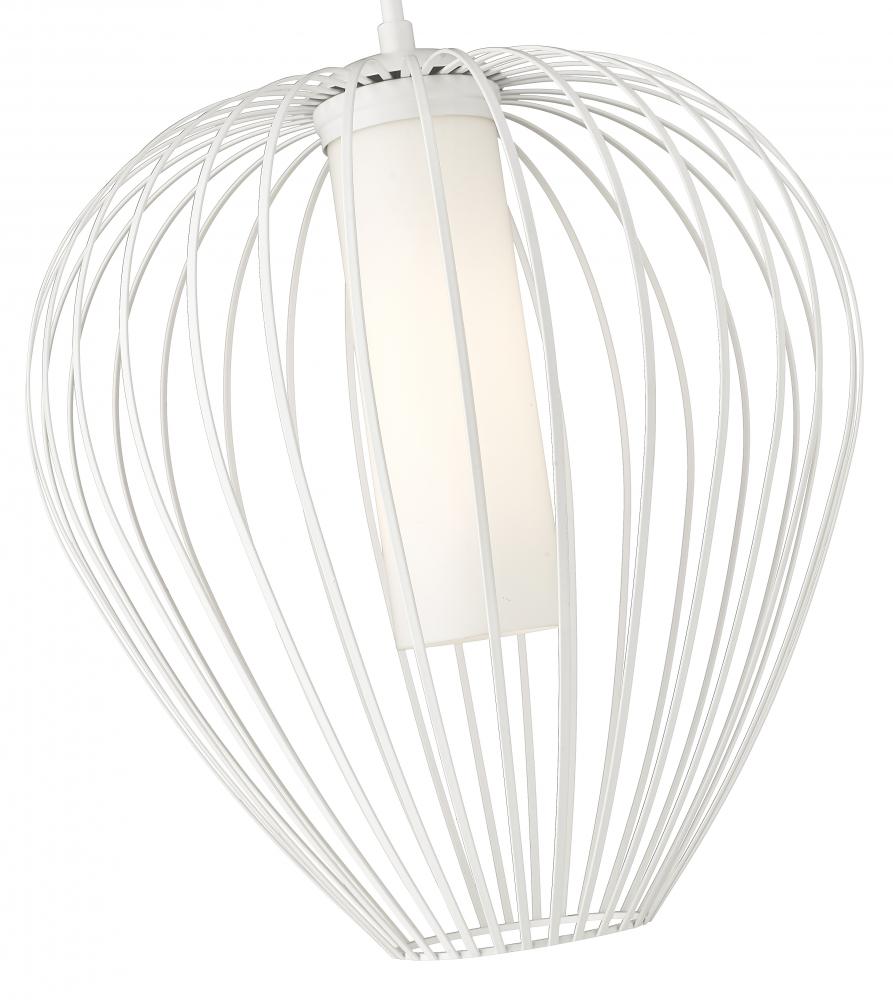 Slender spokes curve and taper to create the bulbous profile of a modern one-light pendant. Striking over a kitchen island or in your living room, it boasts a minimalist textured white finish paired with a white opal glass inner diffuser, creating inviting, true illumination and wonderful ambiance.