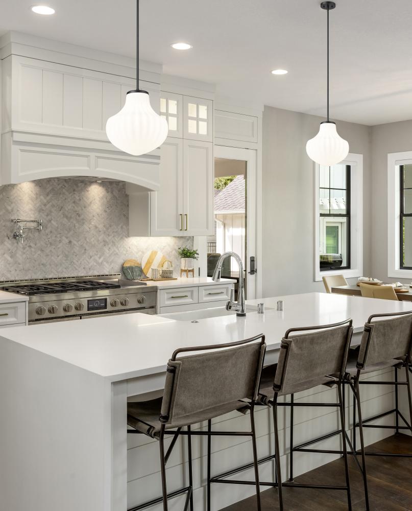 The Newbury pendant series offers an update to the classic schoolhouse look, a perfect complement for transitional, contemporary, and Modern Farmhouse interiors. Featuring white ribbed glass shades in a choice of three shapes, the fixtures are available in