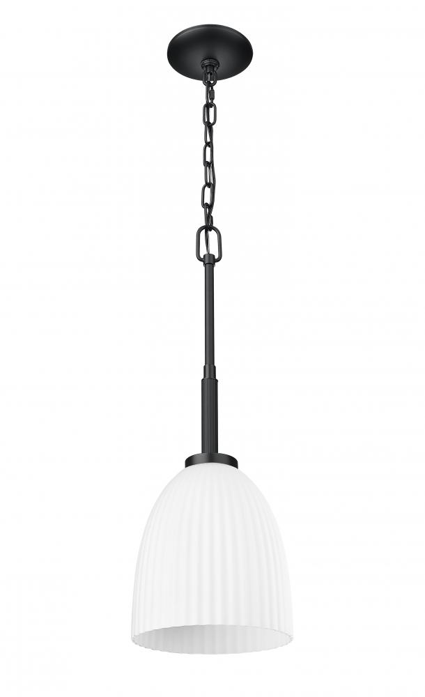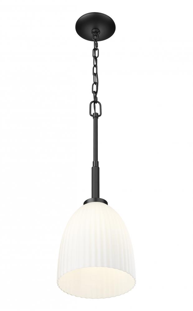 Refined simplicity meets modern contrast in this one-light pendant with a matte black finish. The ribbed matte opal glass creates a soft, warm diffusion that brings depth to even the most minimal spaces. Whether alone or in a cluster, it leaves a bold and balanced impression.