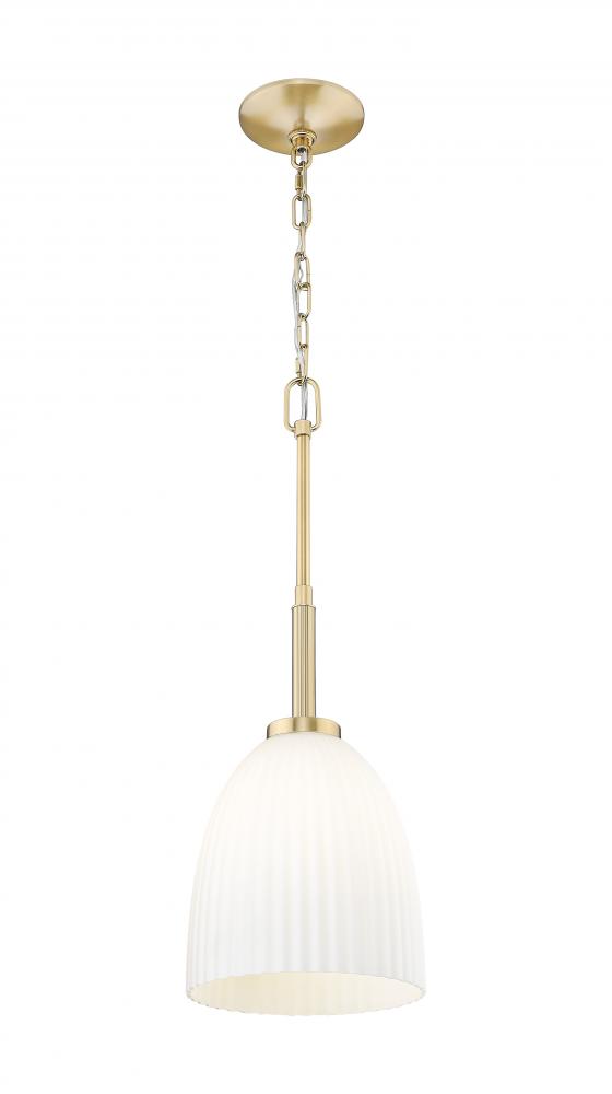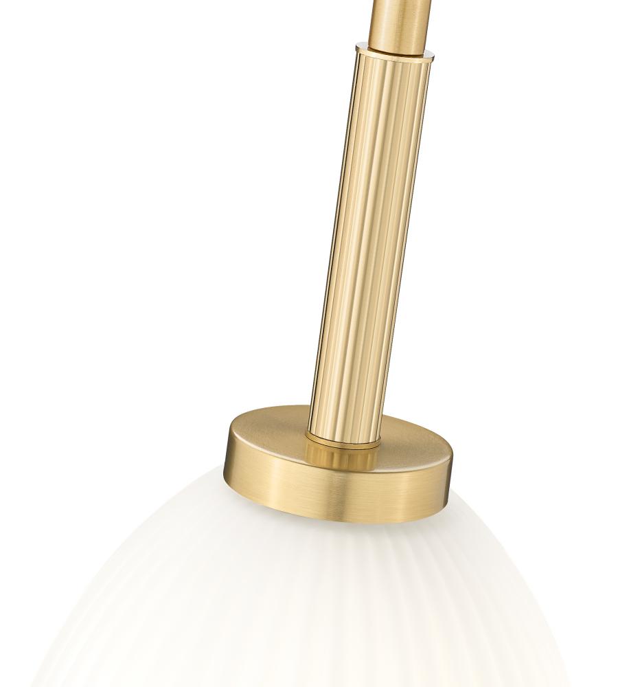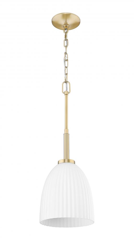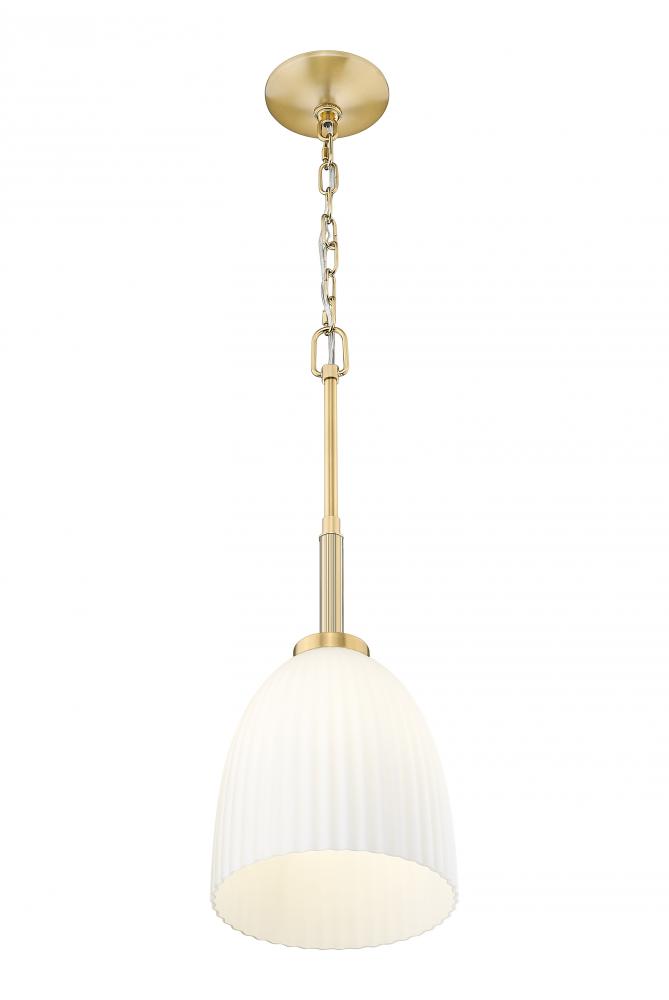 Glowing from within a modern gold finish, this one-light pendant strikes a perfect balance between softness and shine. The matte opal glass is ribbed for texture, giving the light a luxurious, almost linen-like glow. It?s a radiant accent with quiet confidence.