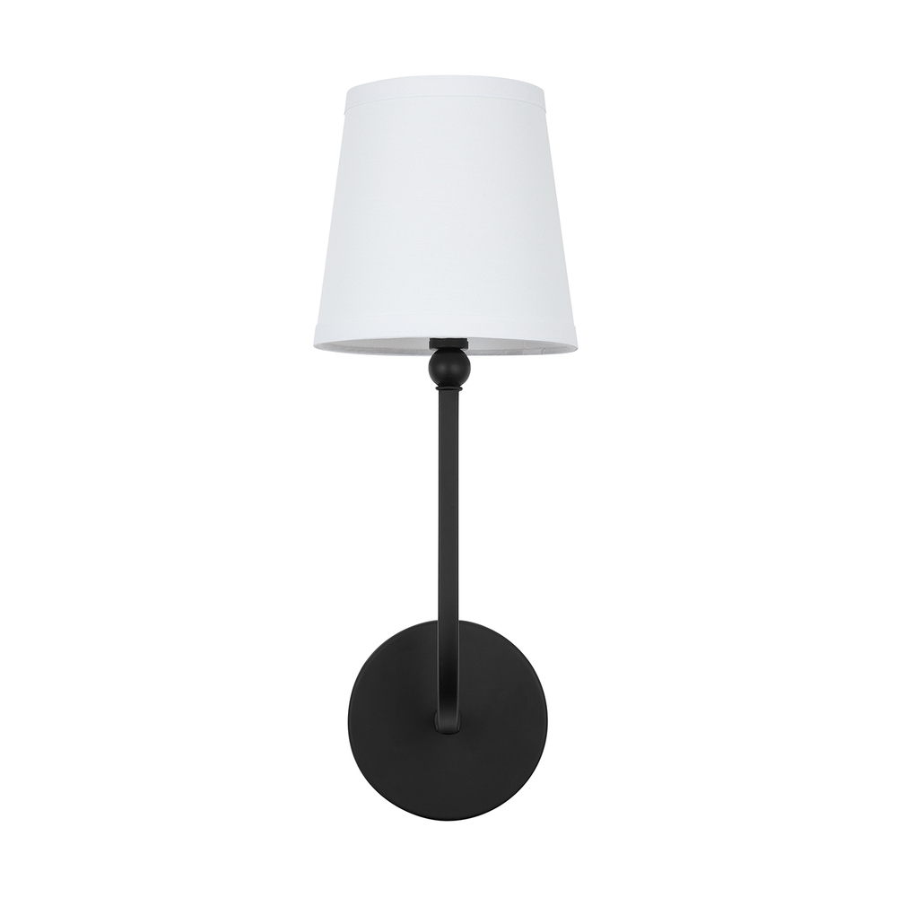 The Dawson 1-light sconce stands out with a decorative, white, tapered fabric shade topping off a curved arm. Clean design complemented by an Aged Brass finish renders this light fixture a timeless, classic yet versatile visual appeal.