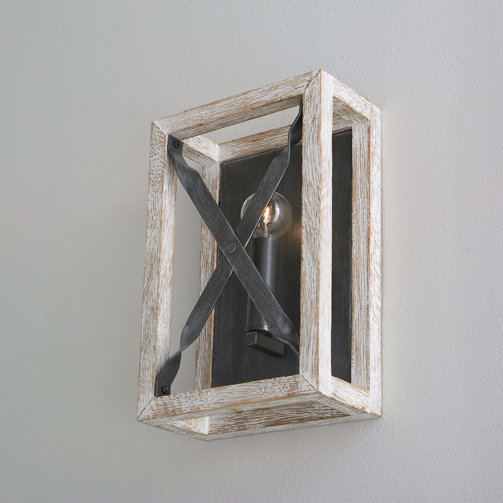 Remi 640411WN 1-Light Sconce in Brushed White Wash and Nordic Iron