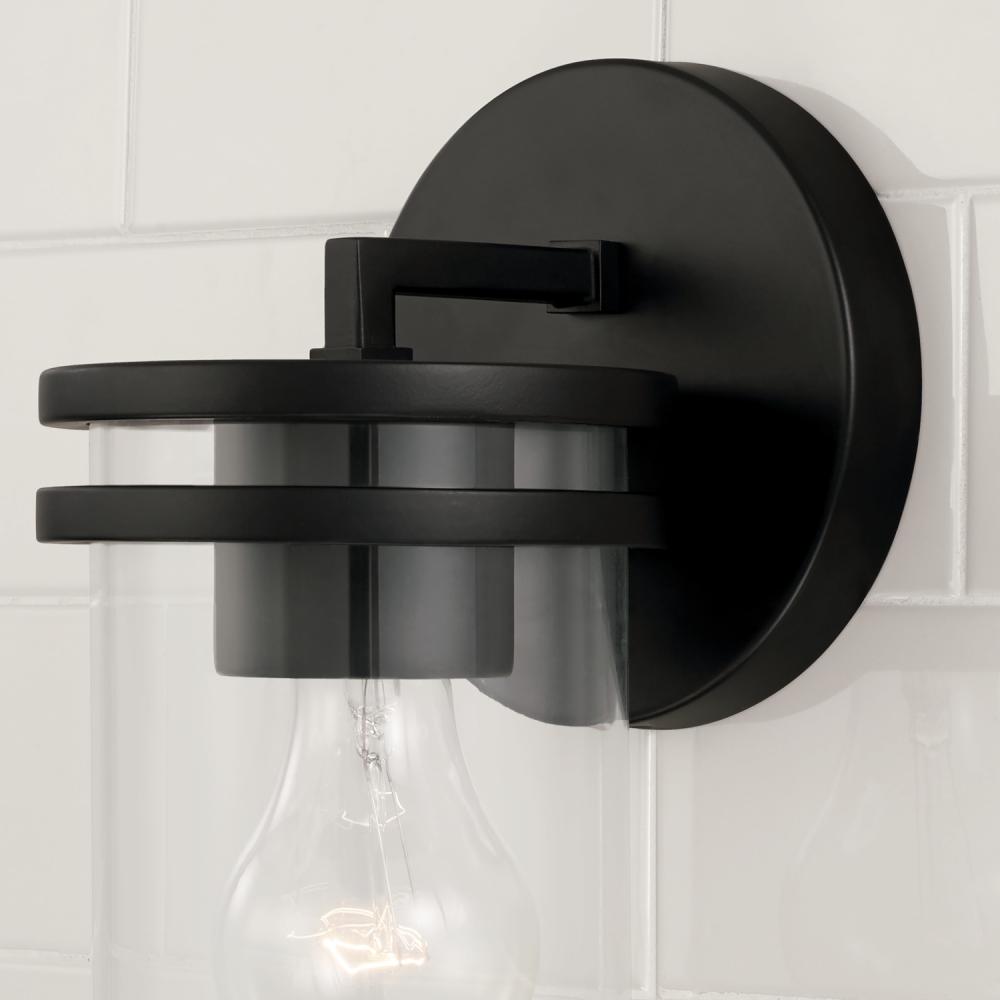 5"W x 9.75"H 1-Light Sconce in Matte Black with Clear Glass