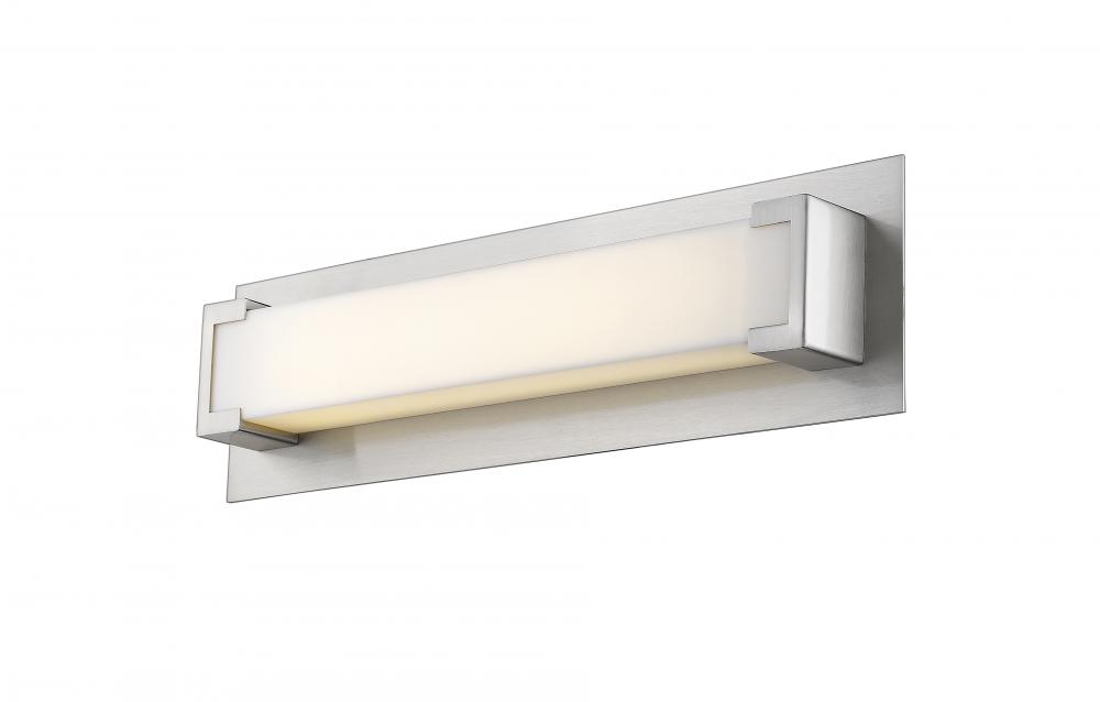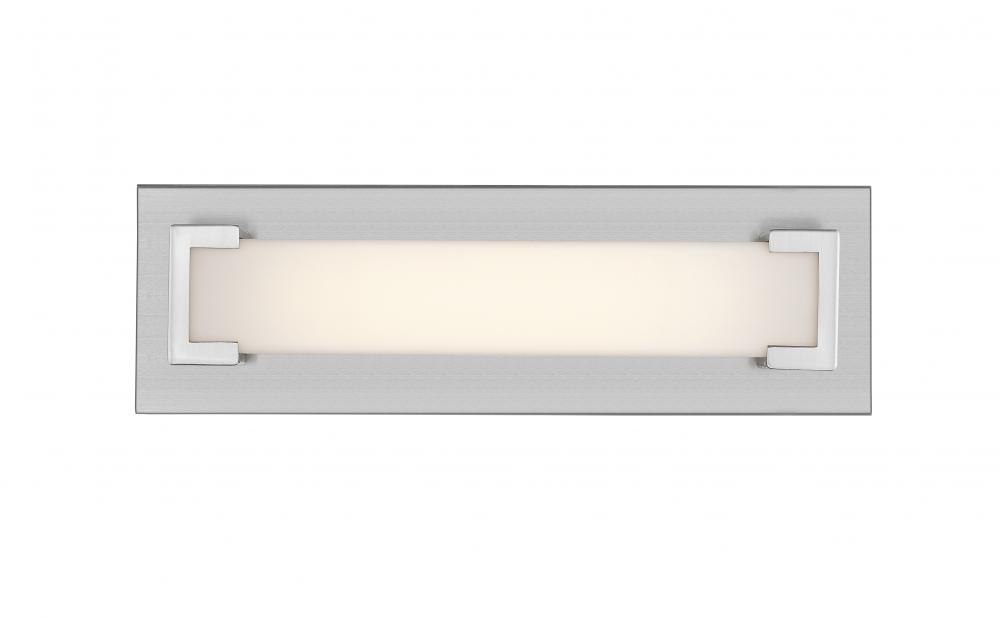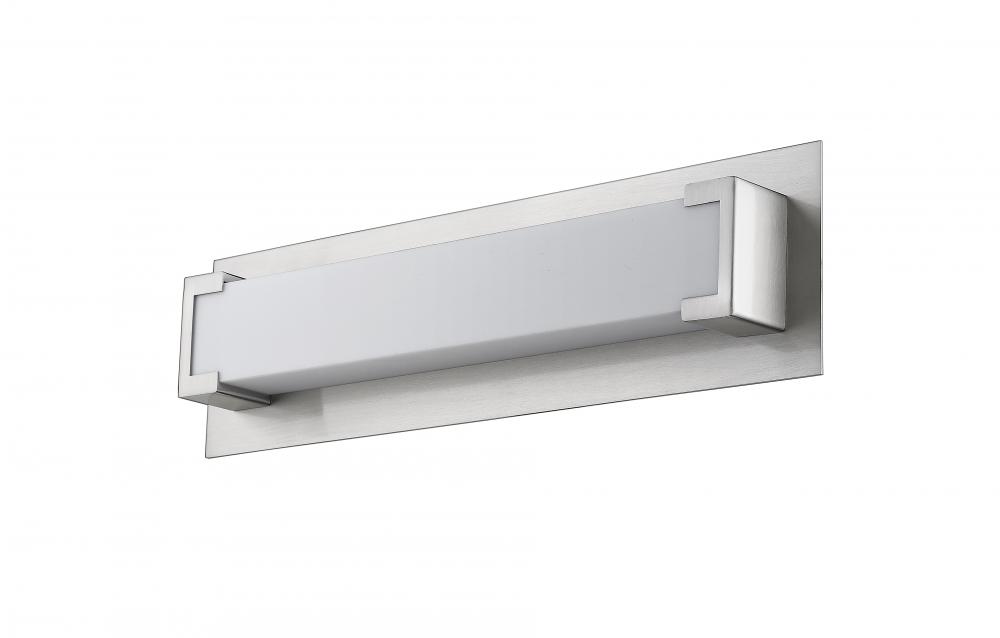 Spruce up a bath space with the Art Deco appeal of this brushed nickel vanity light. Offering integrated LED energy-efficient bulb is shielded by a sleek white frosted diffuser.