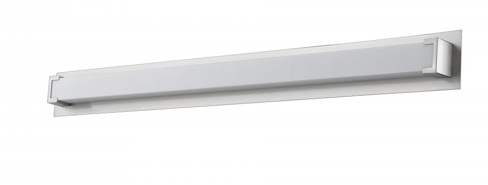 With a classic look blending modern with Art Deco inspiration, this one-light vanity is a wise choice for a stylish bath space. Its brushed nickel steel frame hosts a cool white diffuser, and LED technology delivers energy savings and convenience.