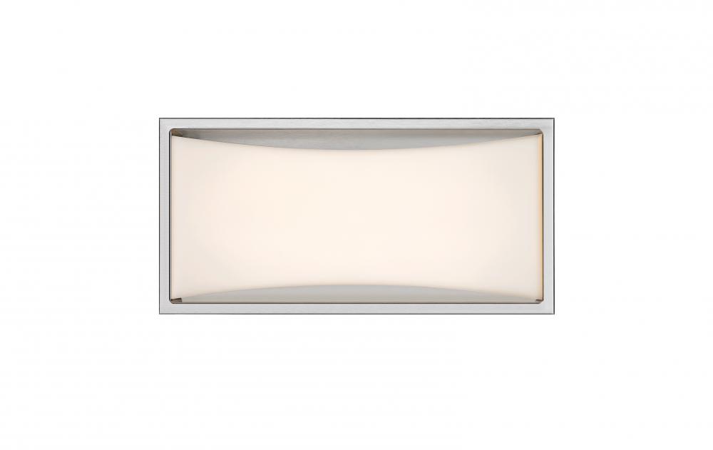 Sleek, gleaming lines of brushed nickel finish metal give this one-light vanity light a clean, modern look. Perfect for a powder room, it boasts a delicate, frosted white shade that diffuses the light into a soft, graceful glow.