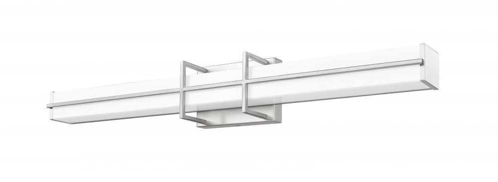 Simplicity sets the tone for the Harrison dimmable LED bath light. Its long, linear profile is perfect over your sink and counter, offering bright, even illumination with selectable color temperature to create the perfect ambiance for you. A rectangular diffuser is frosted for even illumination while a stylish bracket design sports a brushed nickel finish for a crisp, versatile look in your bathroom.