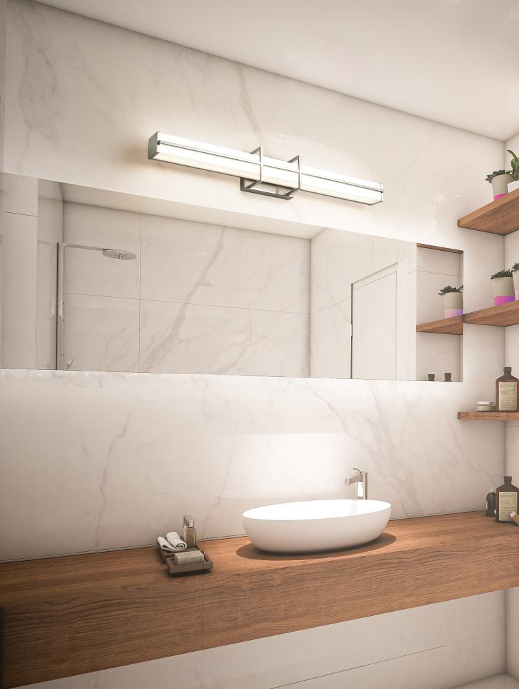 With Zen-like simplicity, the Harrison dimmable LED vanity light offers a design aesthetic that elevates the look of an ordinary powder room or master bath through its carefully crafted bracket. It offers a 90 CRI and a choice of 5CCT to achieve just the r